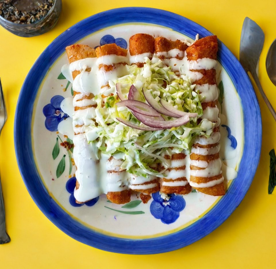 Incluyen crema, queso, aguacate, cebolla y cilantro.