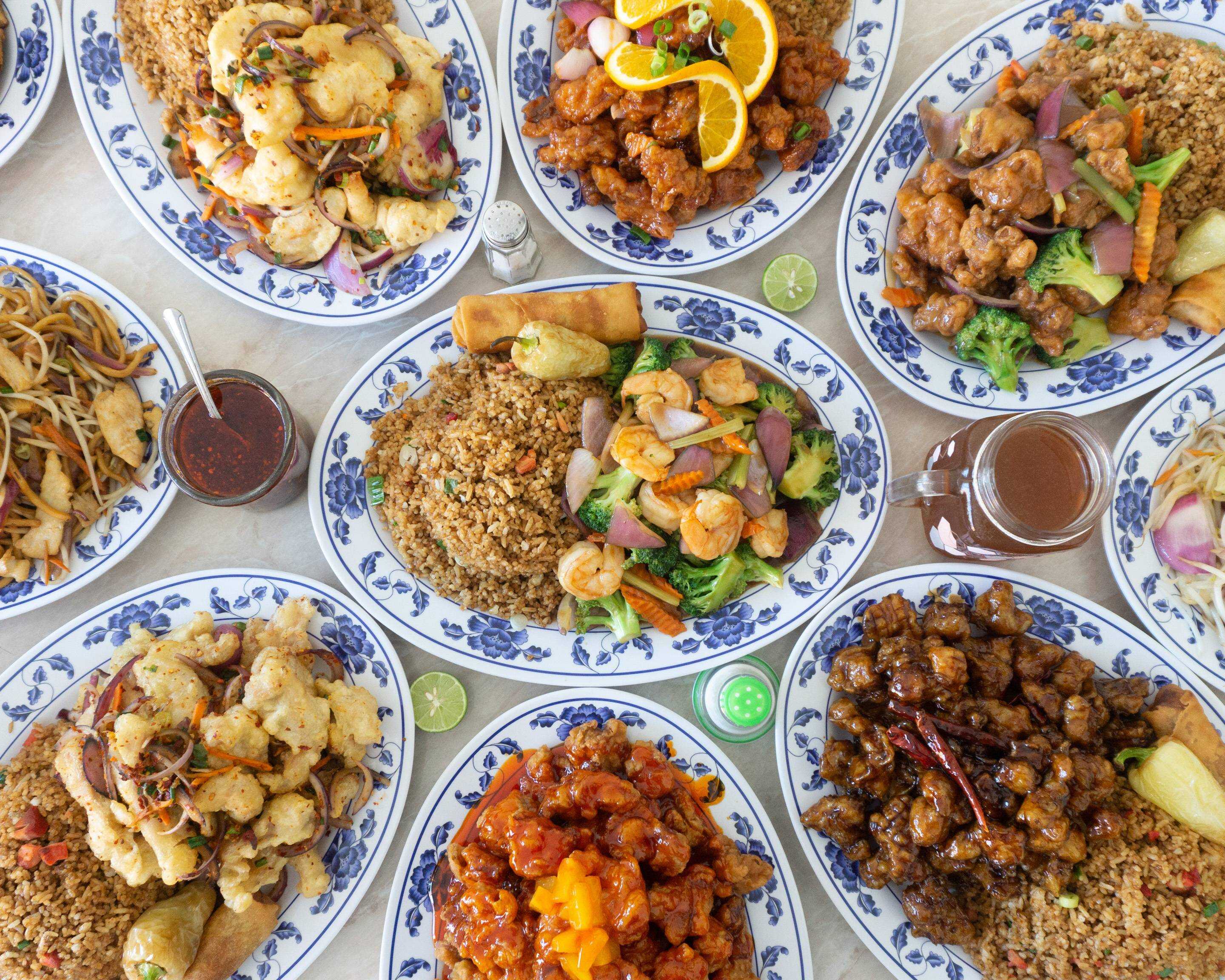 Caldo de molleja con quelite + pollo con piña + carnitas asadas de puerco + cho suey con pollo + arroz cantones + pollo frito + chun kun + pollo cantones