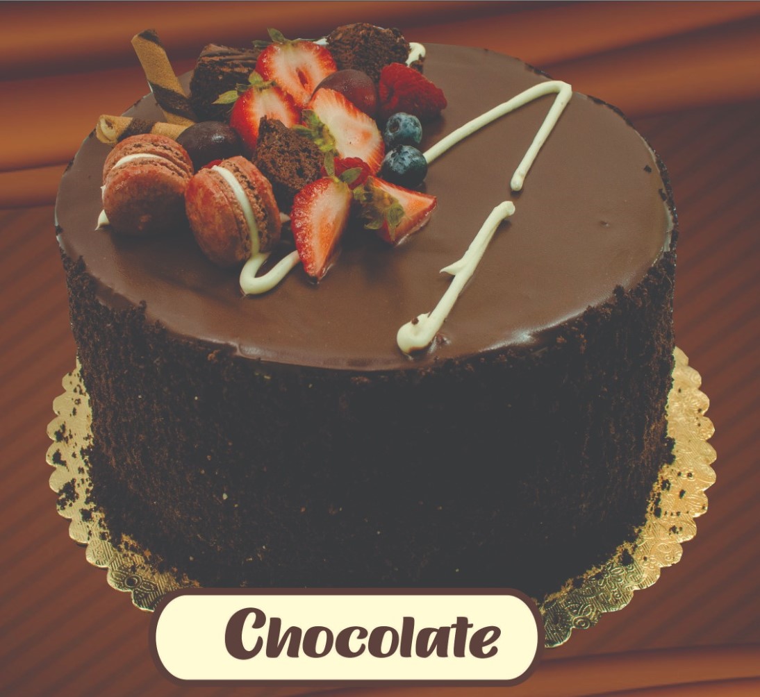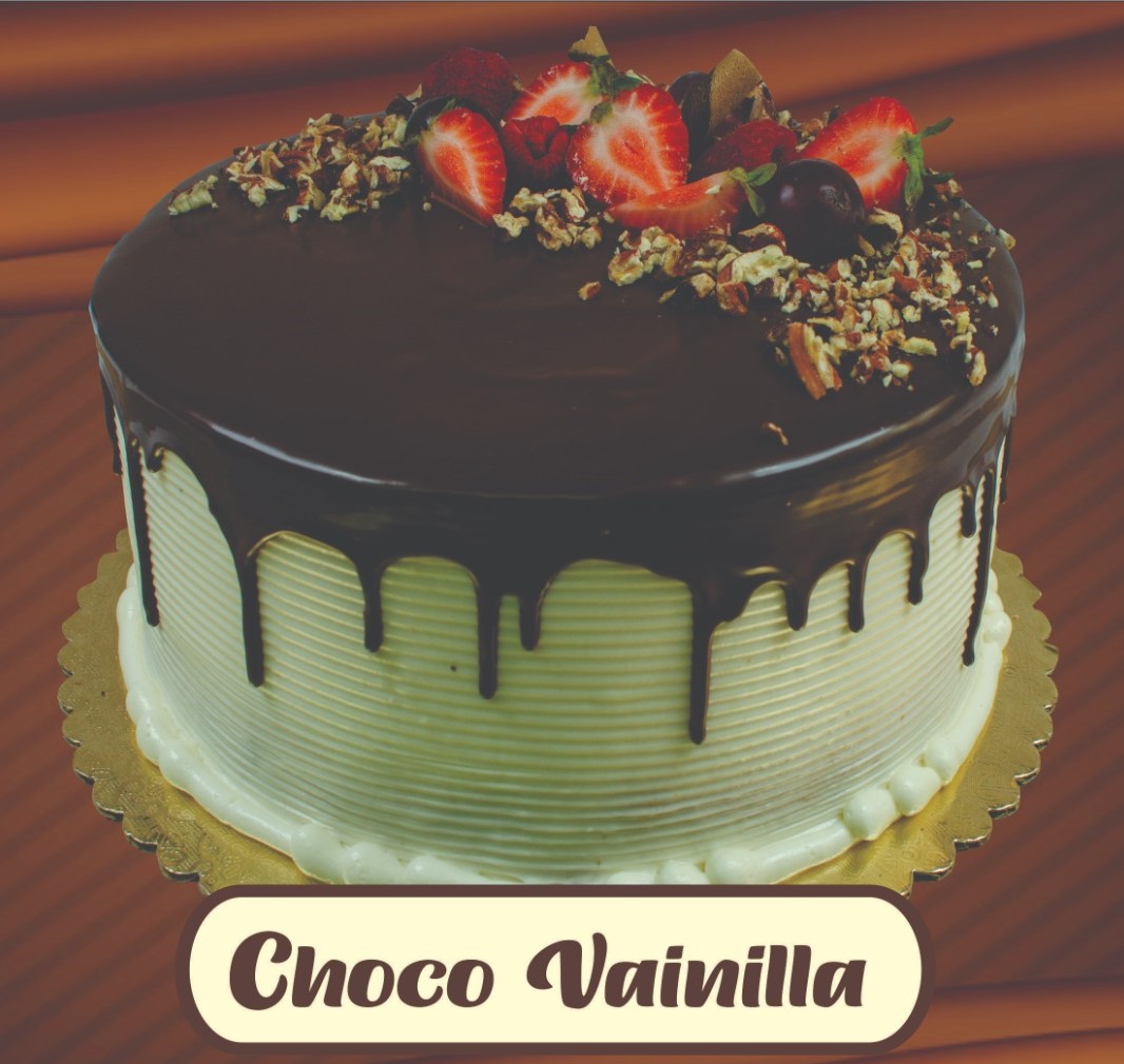1 Capa de pan chocolate y 1 de vainilla rellena con crema de queso, chocolate y nuez.