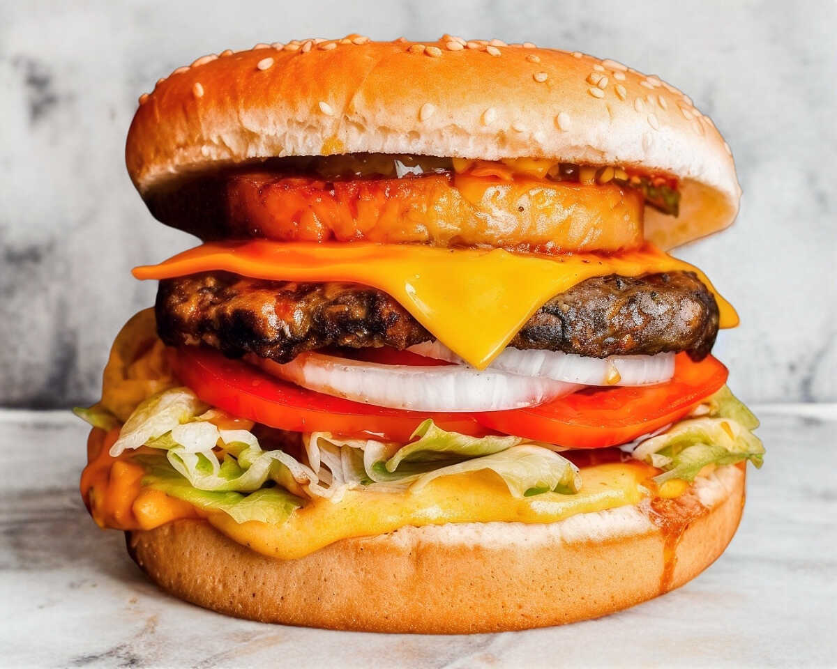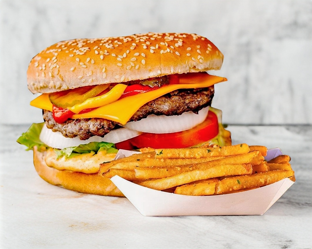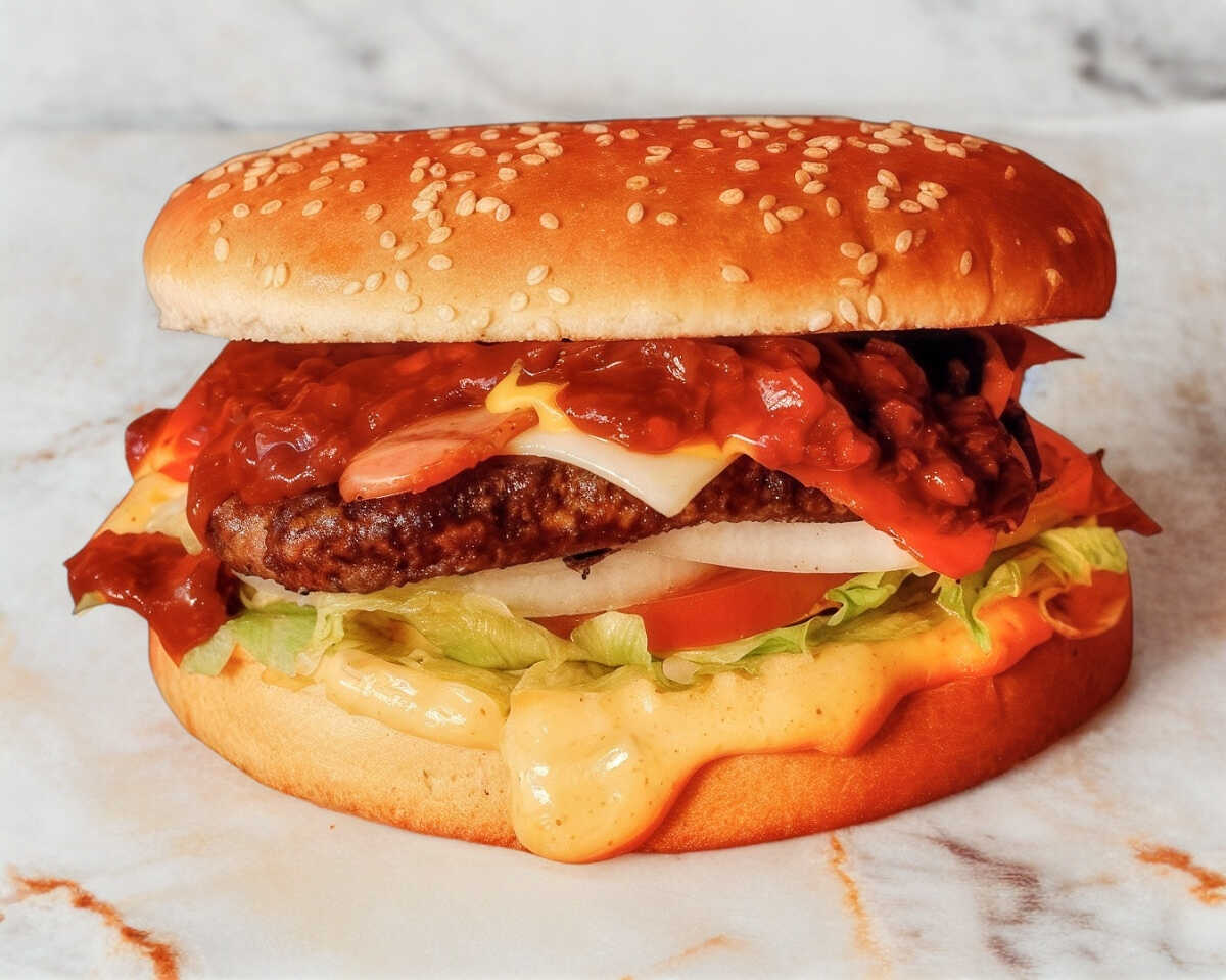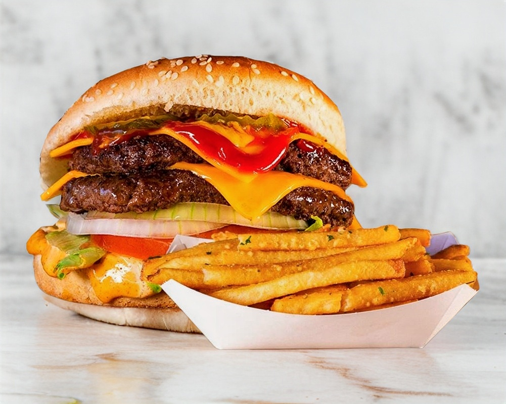 Dos jugosas carnes de res con queso amarillo, lechuga fresca, tomate, cebolla y pepinillos. Coronada con cátsup, mostaza y aderezo City Burger. ¡El doble de sabor para el hambre más grande!