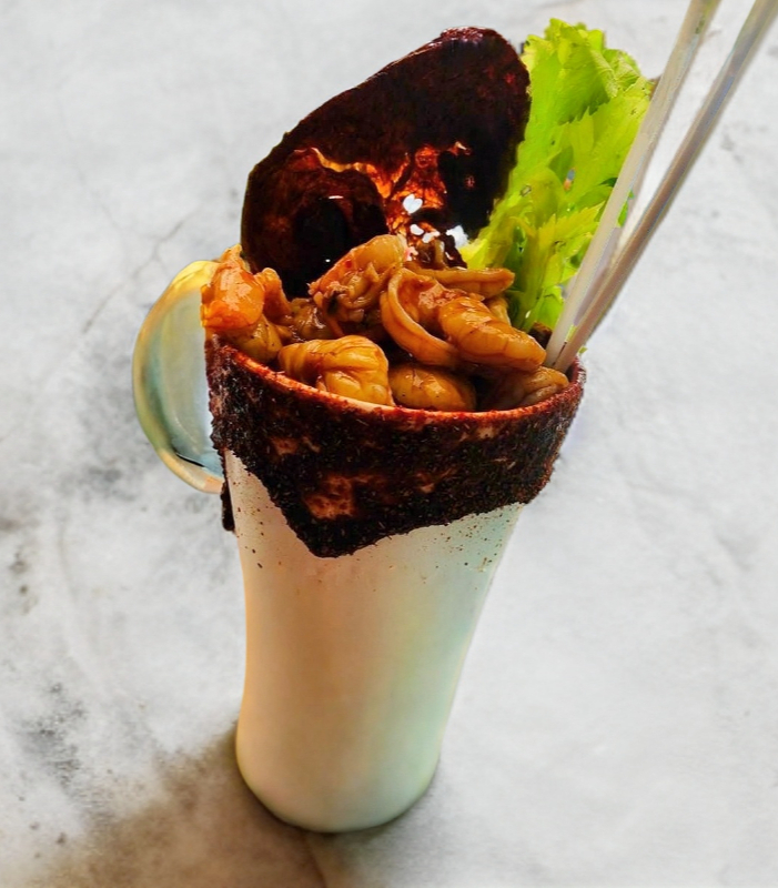 CAMARON, ALMEJA, PULPO, CARNE SECA, JICAMA, PEPINO,CACAHUATE,CHACACHACA Y SALSAS DE LA CASA