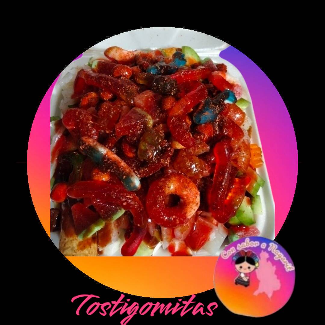 Tostitos verdes, jícama, pepino, cuerito, cacahuate, gomitas, chacachaca, chile, chamoy, tajín y clamato.