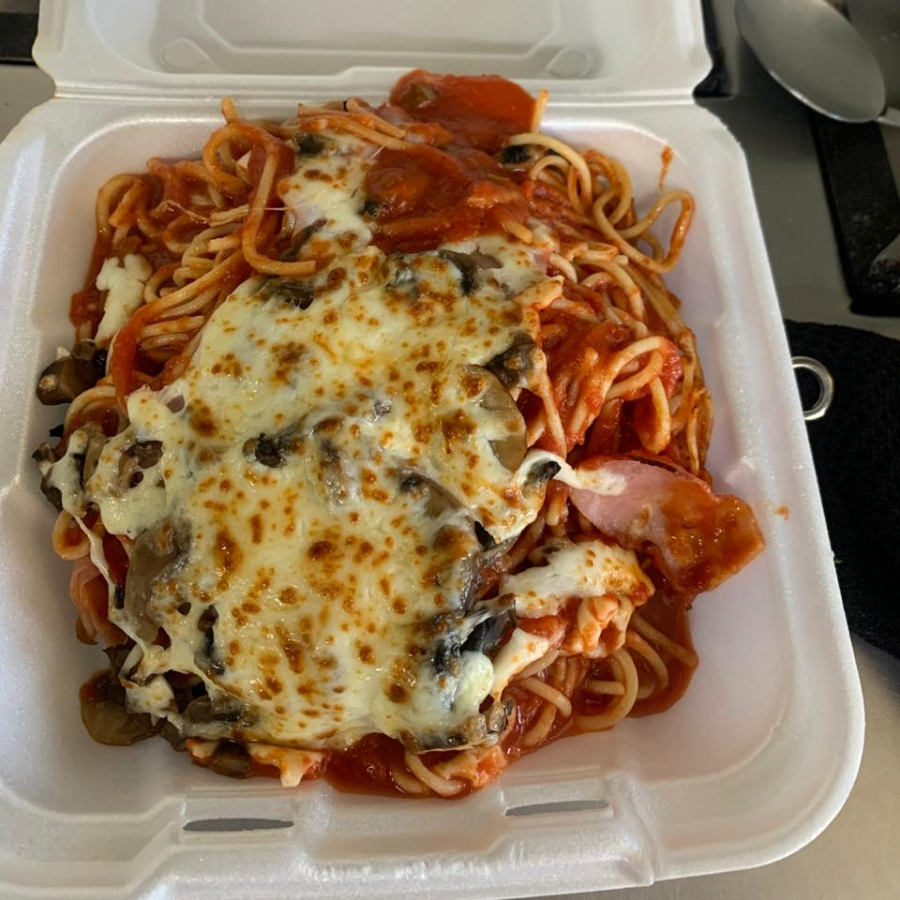 Pasta italiana preparada con salsa tradicional en porción chica.