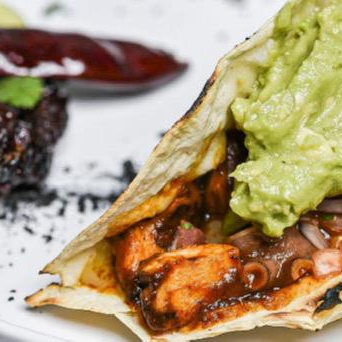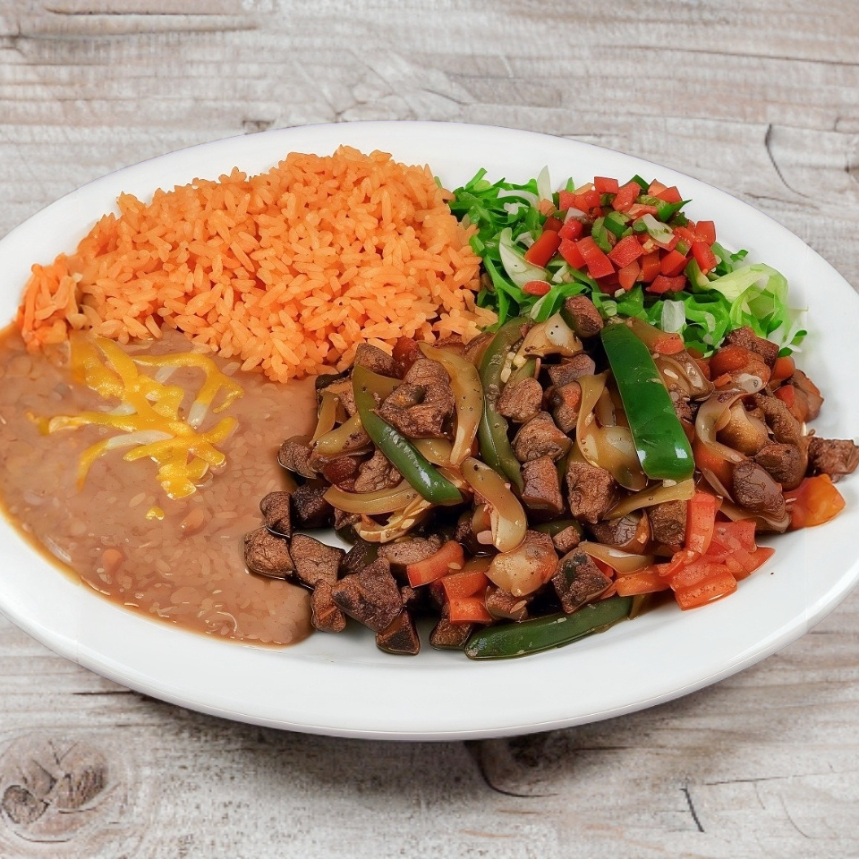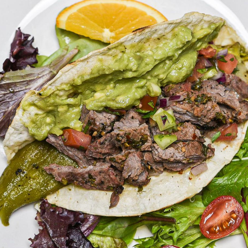 con Tortilla de Maíz o Harina,guacamole,pico de gallo y aderezos