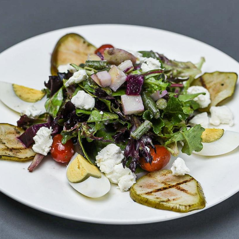 Lechugas Mixtas,tomate cherry,betabel cocido,huevo cocido,ejotes,papa y pera asada