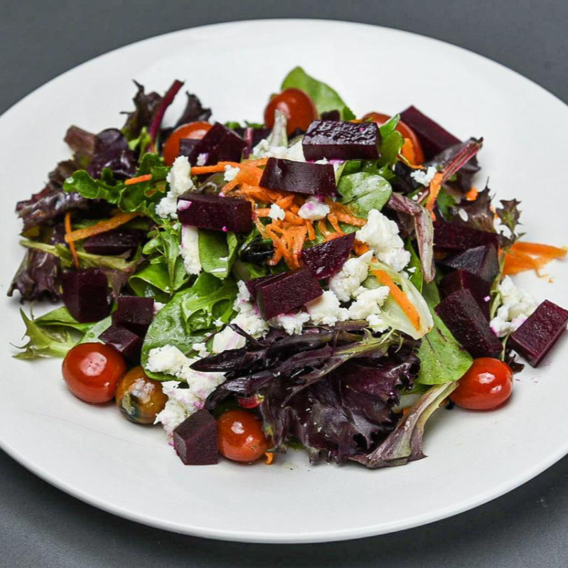 Lechugas Mixtas,tomate cherry,zanahoria rallada,betabel cocido y queso panela