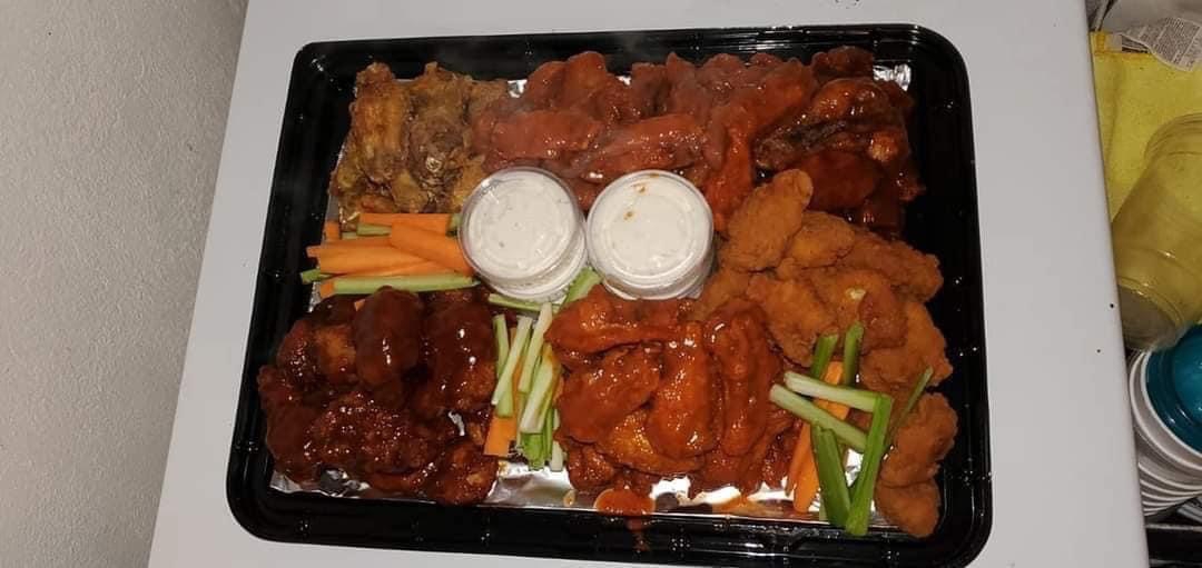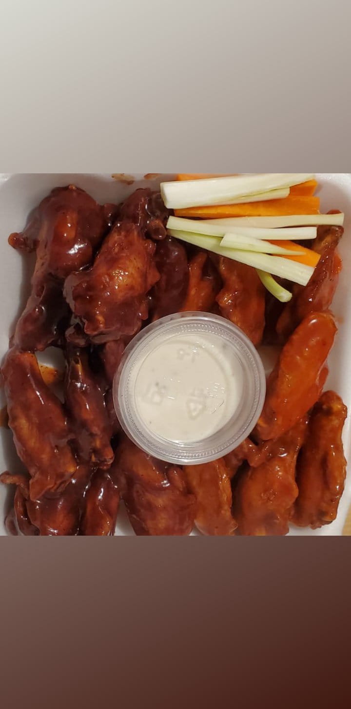 48 alitas Una orden de papas, su respectiva verdura y aderezo ranch.