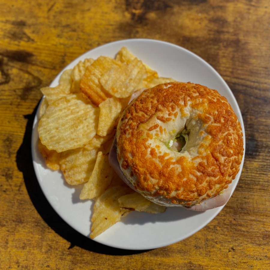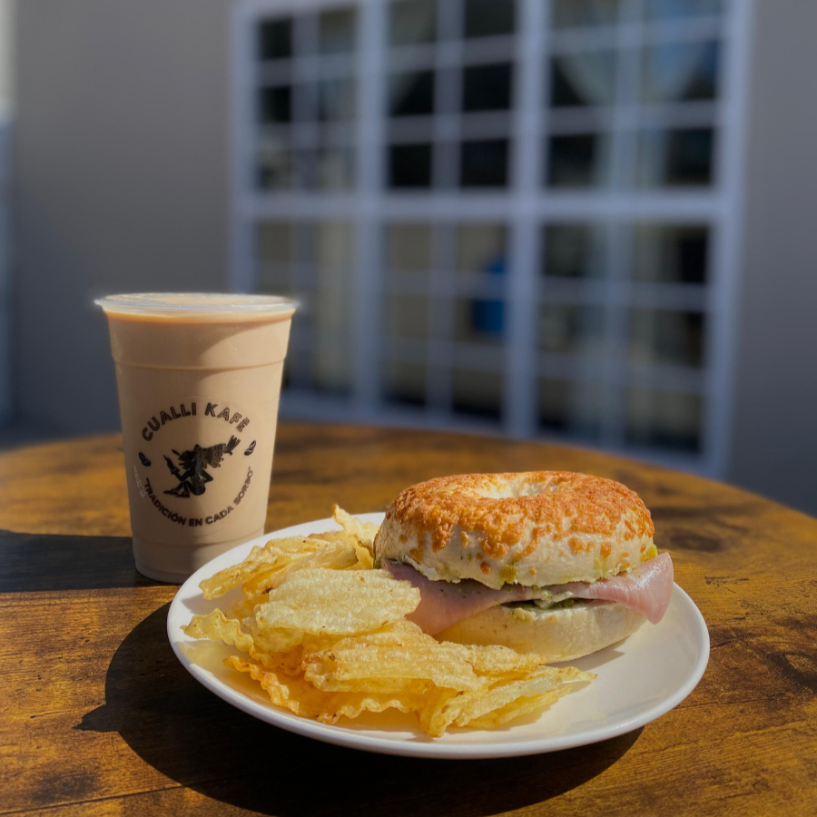 BAGEL CONN JAMON DE CERDO CON UN LATTE NATURAL