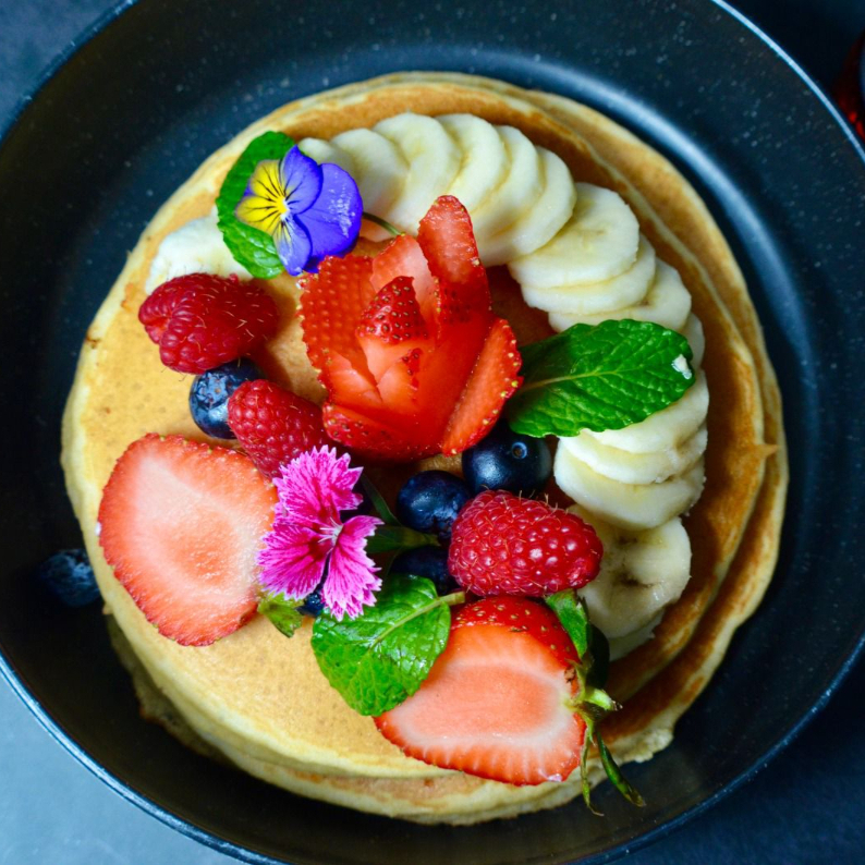 3 Hot cakes sencillos con mantequilla y 1 topping a elegir entre Nutella, mermelada o cajeta.