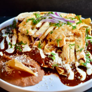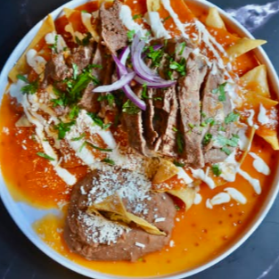 Chilaquiles al gusto con tu salsa y proteína favoritas, crema y queso. Acompañados de frijoles refritos.