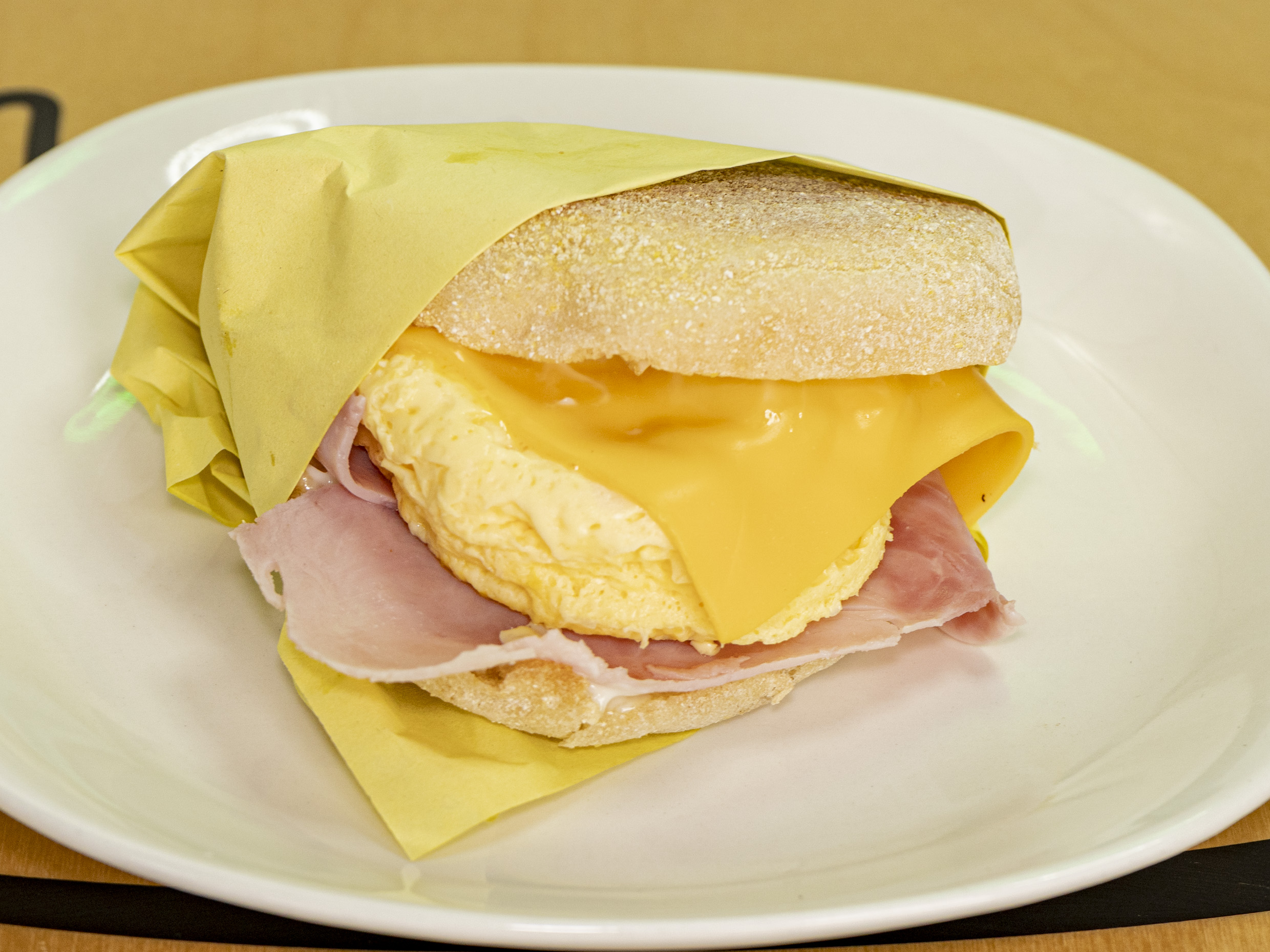 Pan english muffin de jamon con pavo, queso americano y huevo