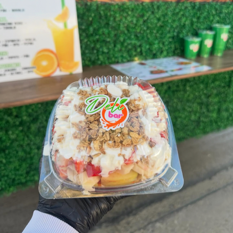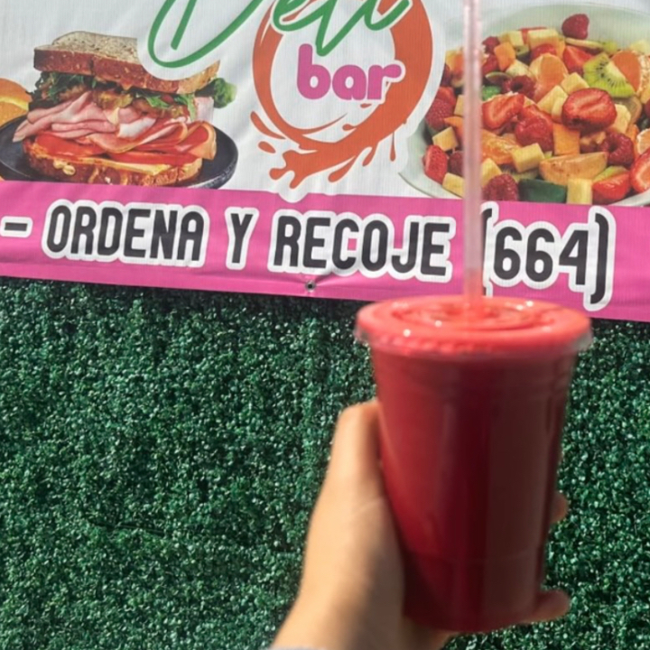 Fresa,papaya o platano, leche deslactosada, avena y azúcar, 16oz