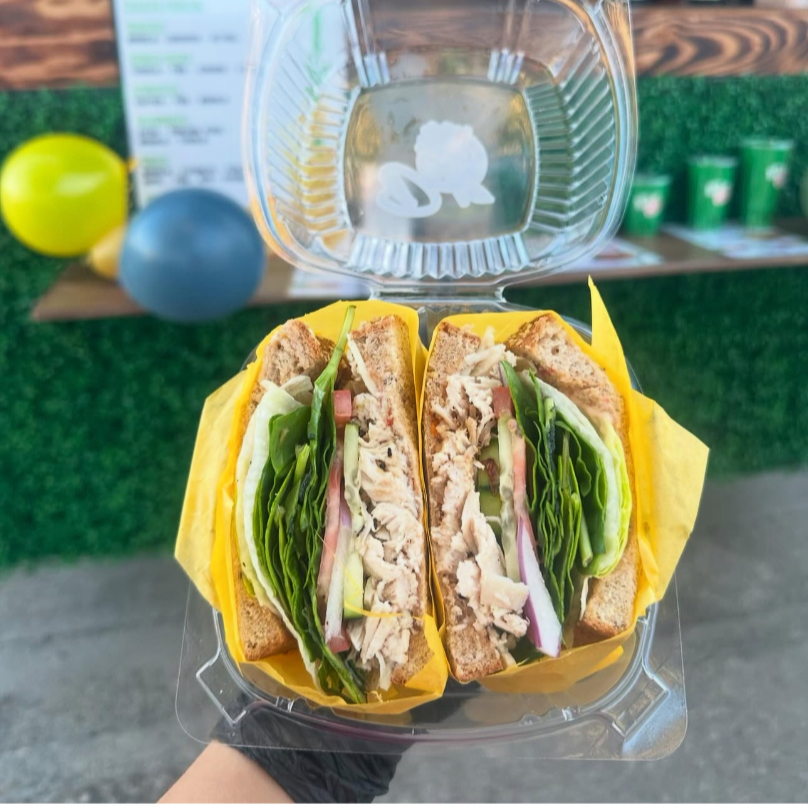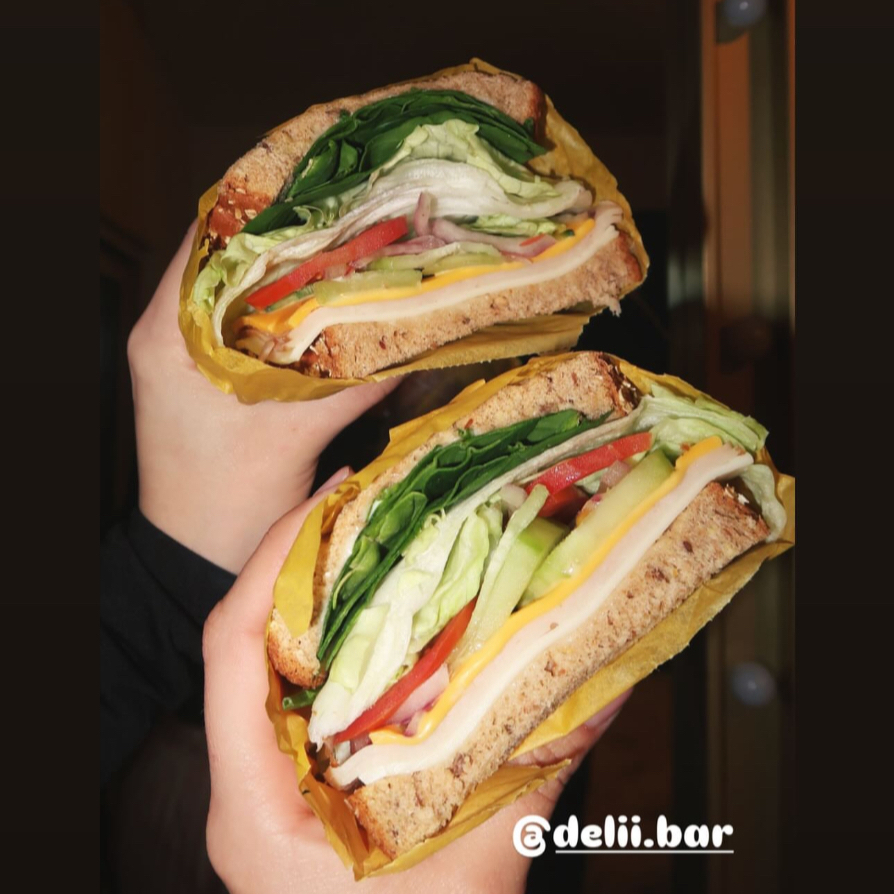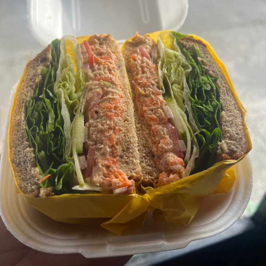 Pan 12 granos, espinacas, lechuga, pepino, cebolla morada, tomate.