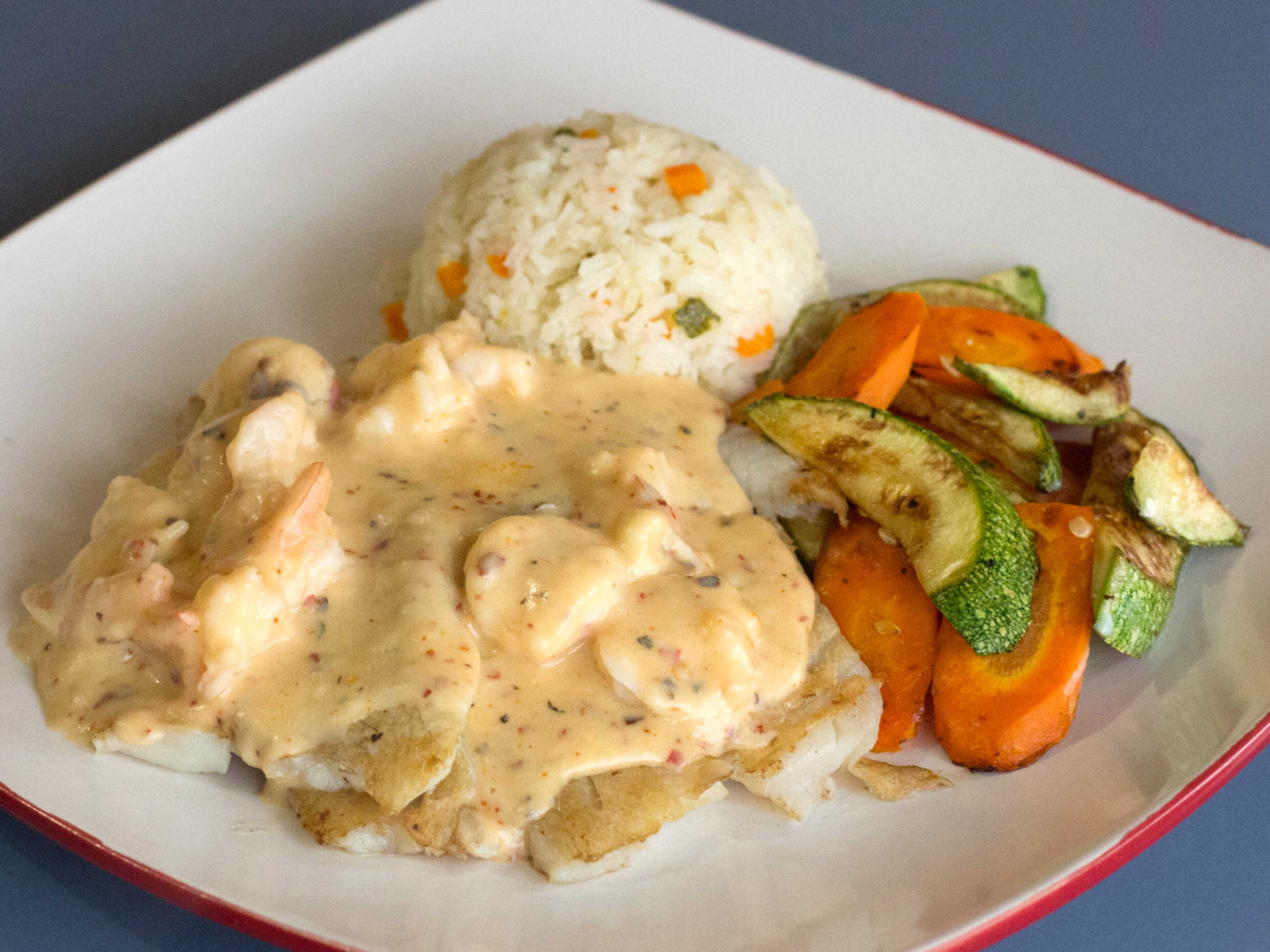 Acompañada de verdura asada (calabaza y zanahoria) y arroz