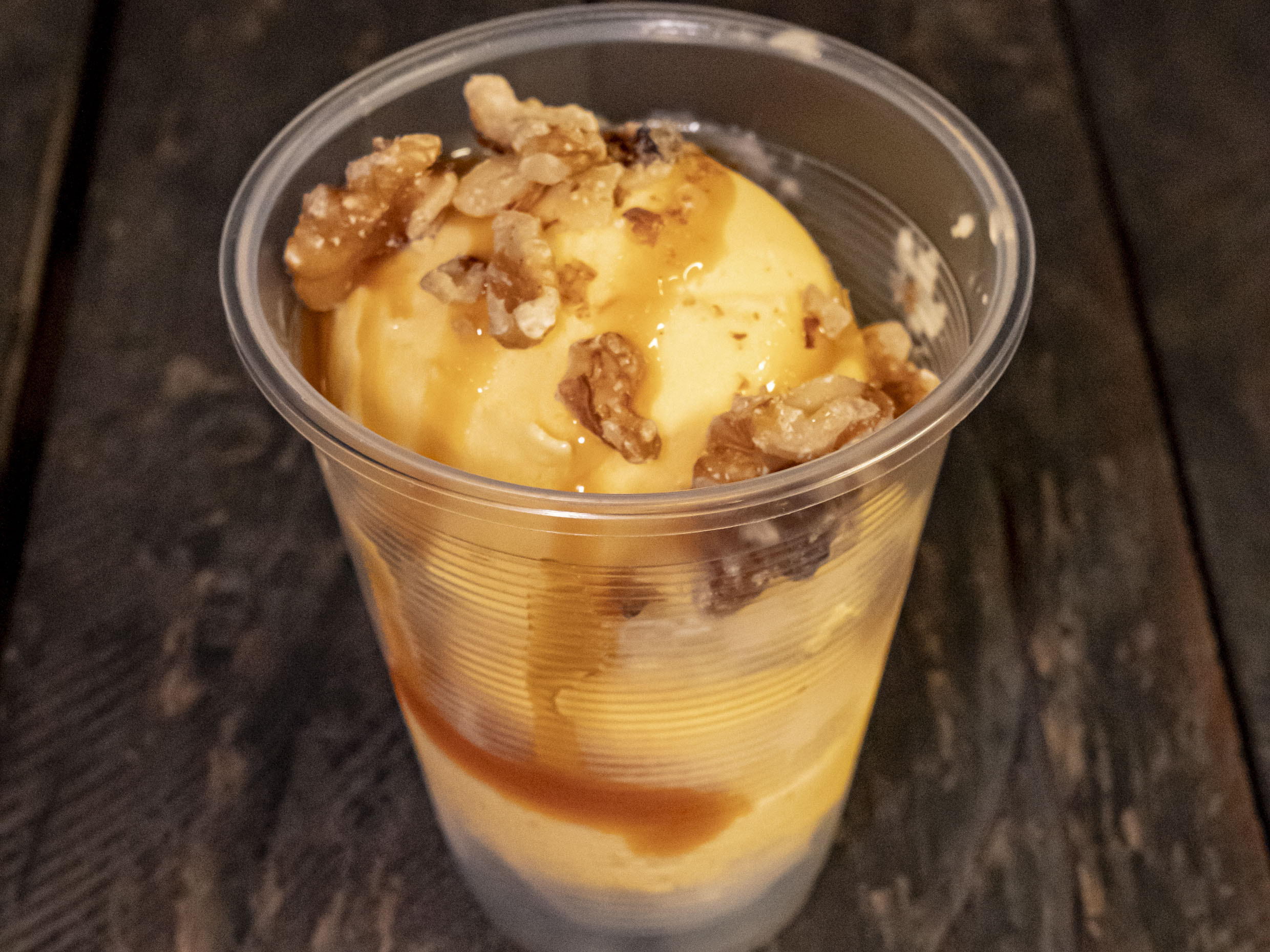 Nieve de vainilla, caramelo y nuez.