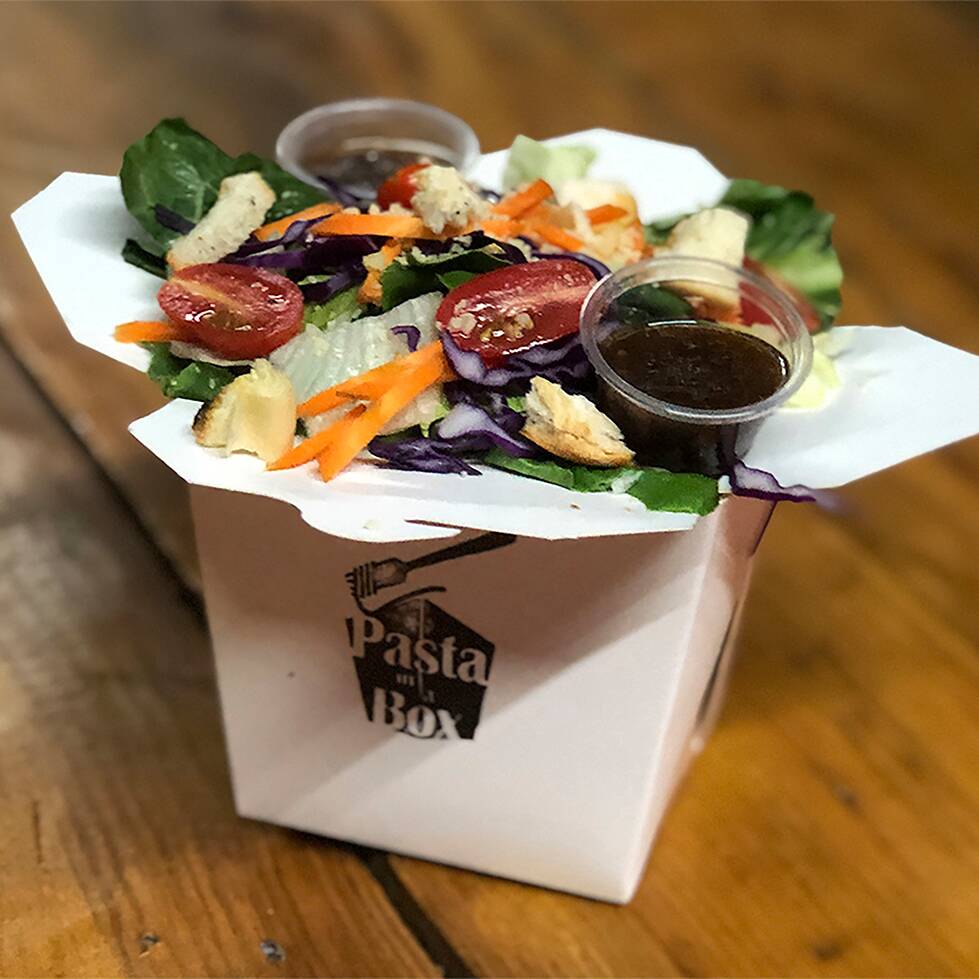 Lechuga mixta, zanahoria, repollo morado, perejil, tomate cherry, crotones, parmesano y pollo asado. con vinagreta balsamica.