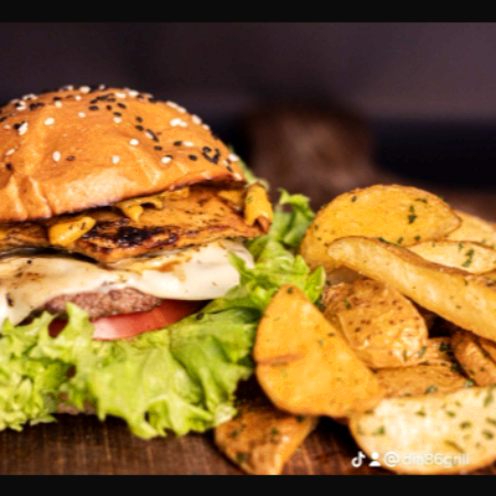 Carne, lechuga, tomate, cebolla, queso amarillo y aderezo mil islas.