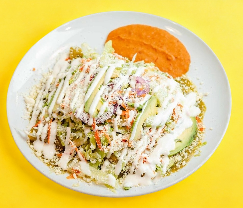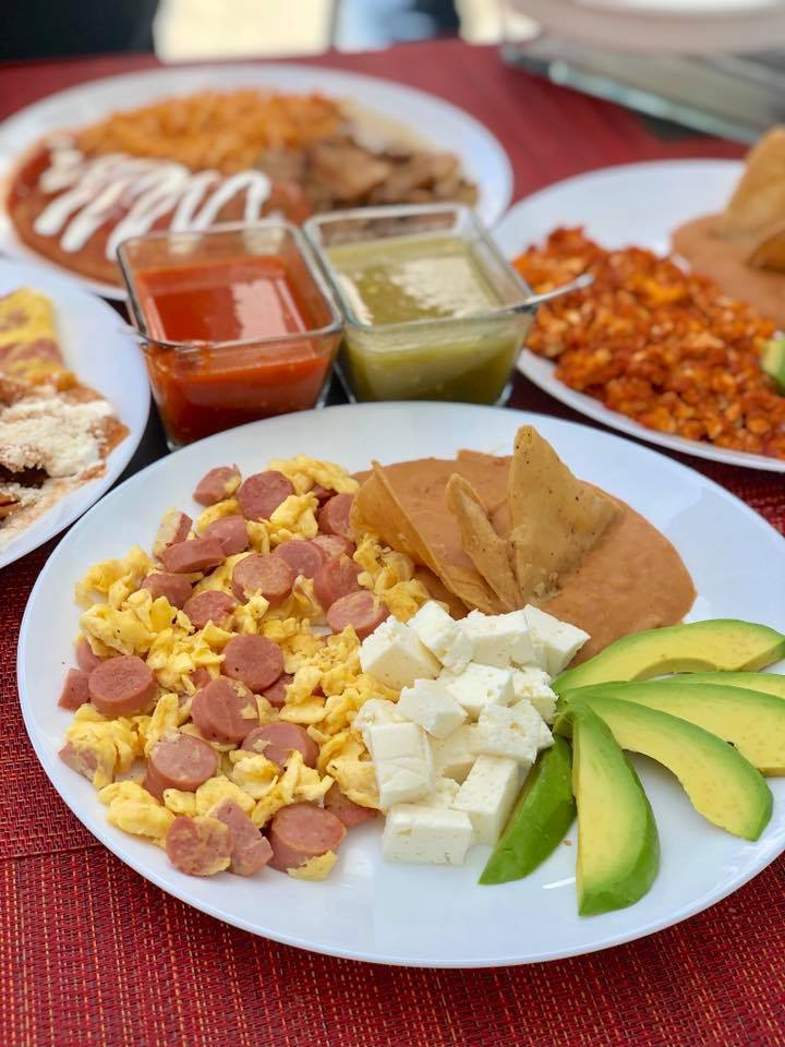 Acompañado con chilaquiles rojos y frijoles puercos.