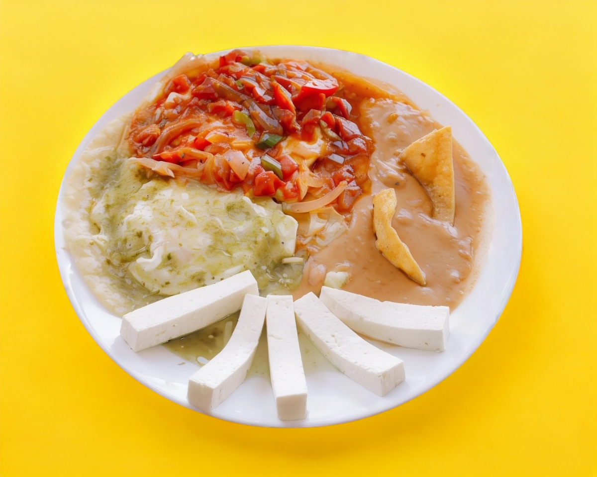 Con frijoles y queso.