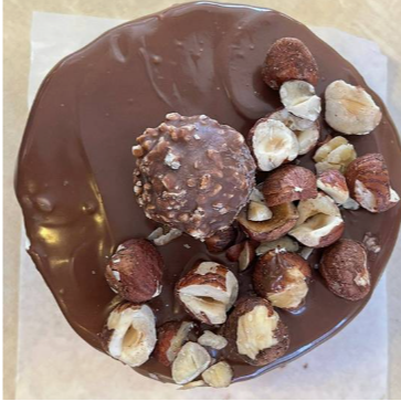 Nutella, Kinder Bueno, chispas de chocolate, plátano, crema batida y nieve.