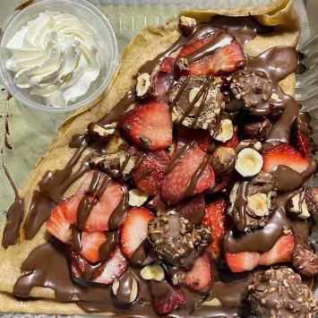 Nutella, Ferreros, avellanas, fresa o plátano, crema batida y nieve.