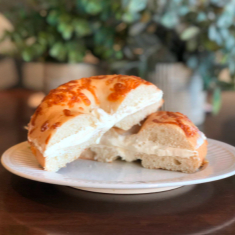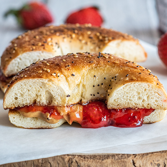 Bagel clasico con Crema de cacahuate y mermelada de Fresa
