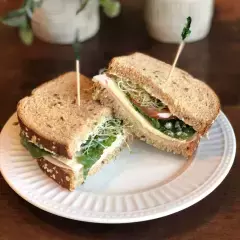 Pan 12 granos, jamón de pavo, queso blanco, lechuga, tomate, alfalfa.