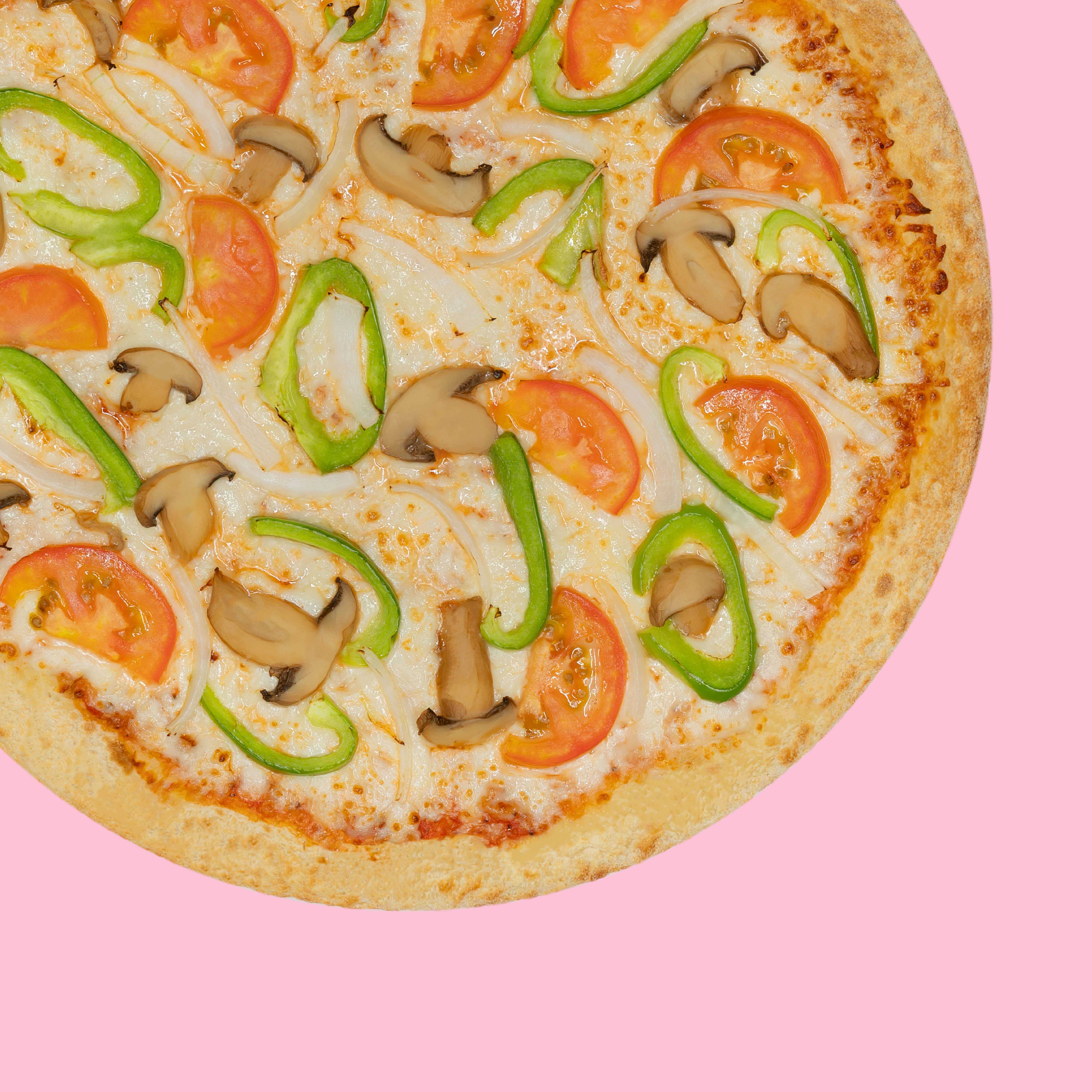 Vegetariana: Salsa de tomate, queso, tomate bola, cebolla, hongos y morrón verde.