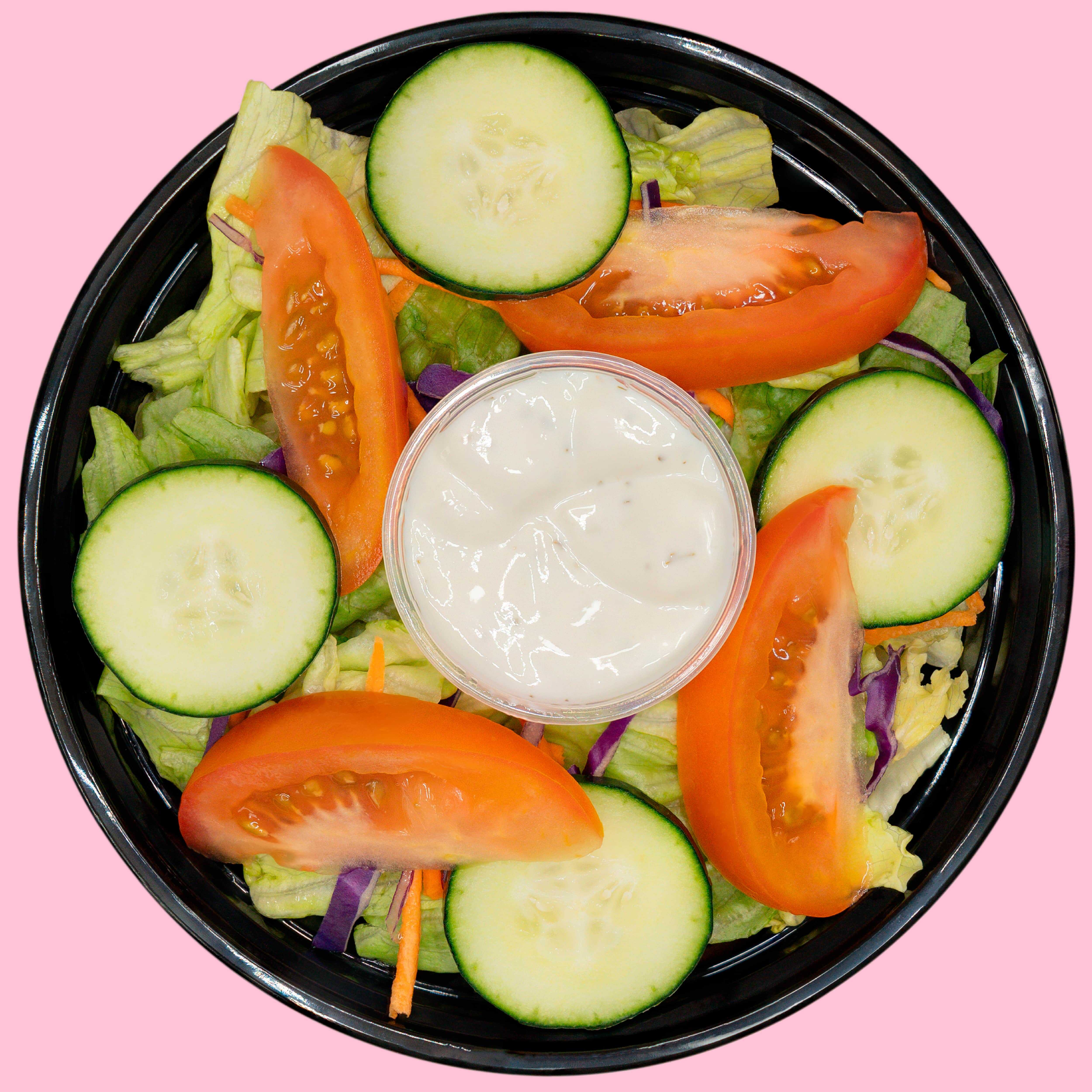 Tomate, pepino, tortilla para pizza, infusión de ajillo y aderezo ranch.
