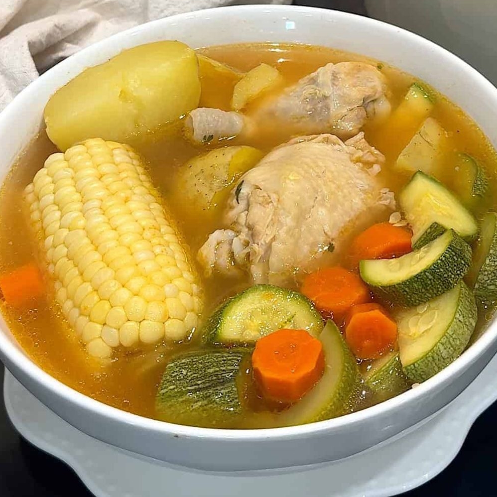 Caldo de Pollo con calabaza,papa,zanahoria,elote Amarillo y chayote