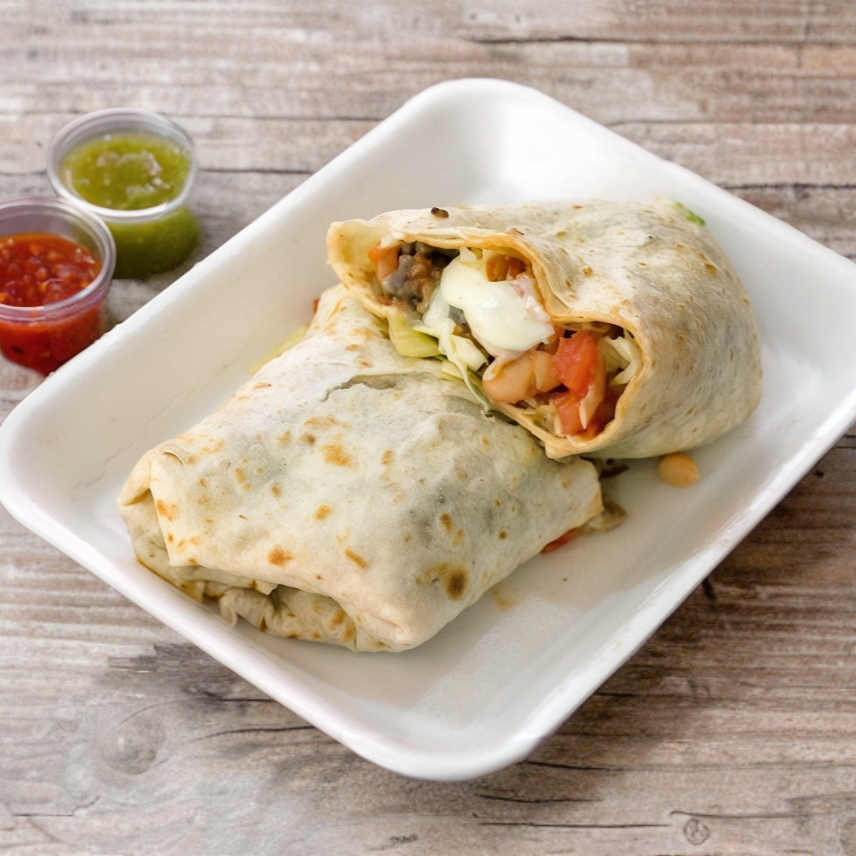Carne 100% de res, chorizo, queso, tocino, lechuga y tomate