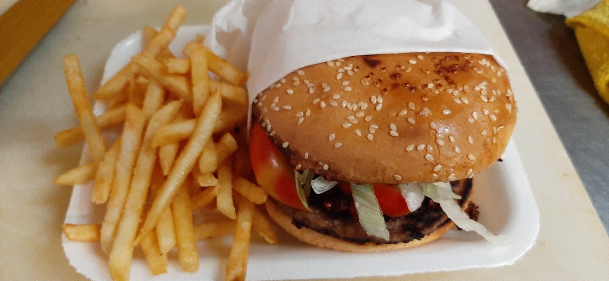 Carne 100% de res, lechuga, tomate y queso