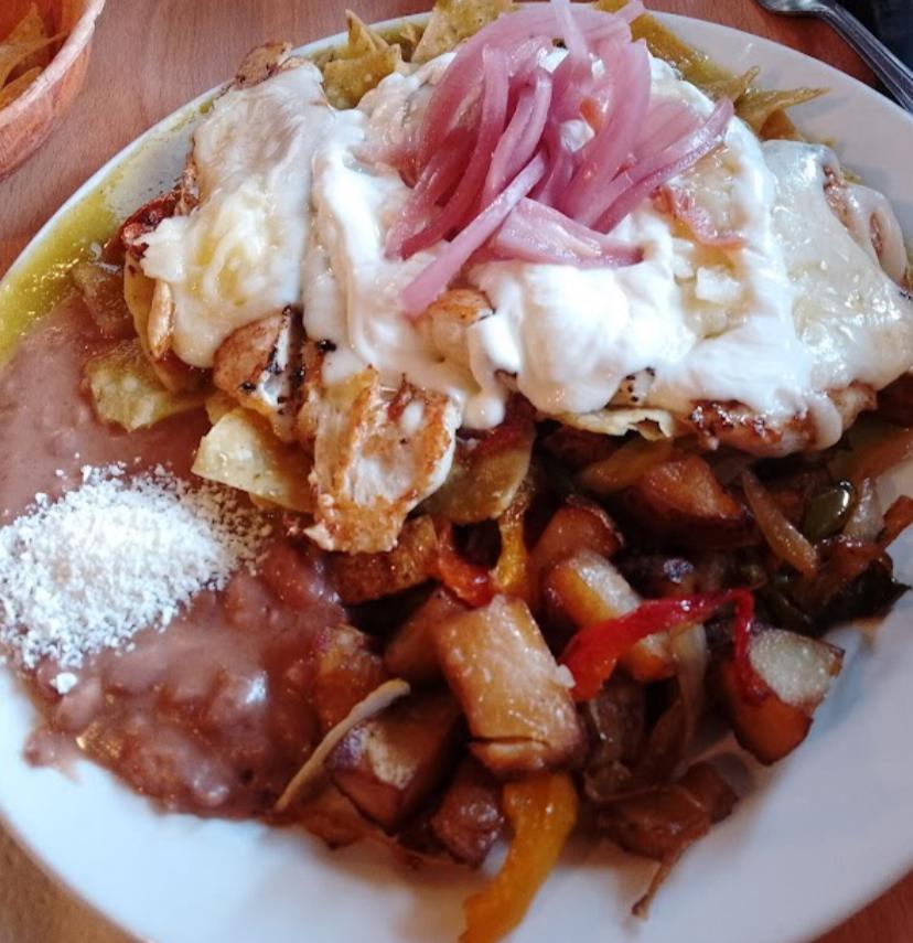 Incluye Guarnición de Frijoles y Chilaquiles, con Jamón y Salchicha.