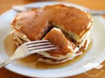 2 Piezas de hot cakes con 2 huevos, 2 tocinos y 2 salchicha italianan.