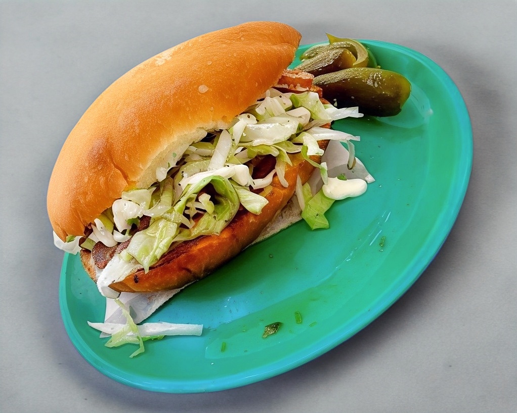 Mayonesa,milanesa de pollo,lechuga, tomate,cebolla,aguacate, chiles jalapeño,