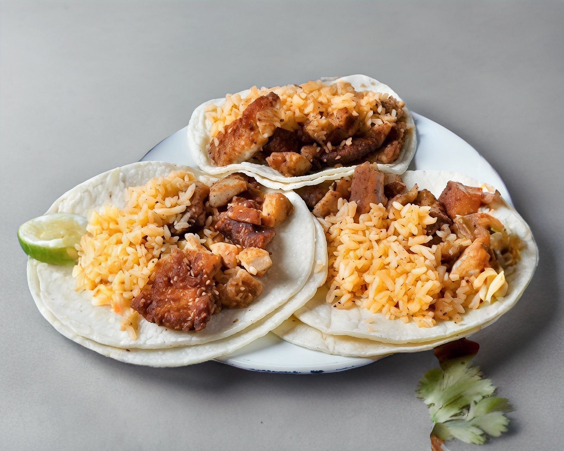 Taco de milanesa de pollo con arroz y frijoles