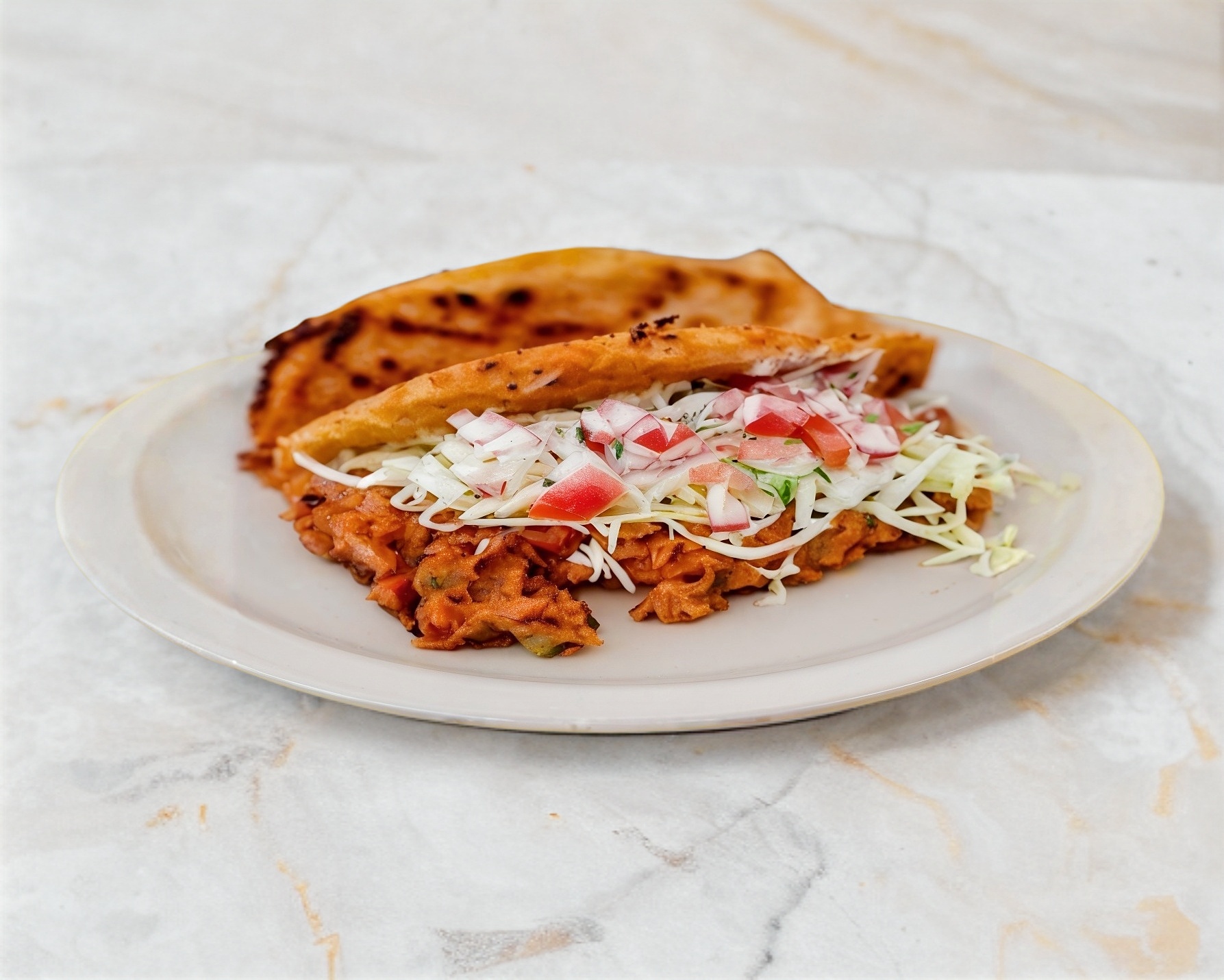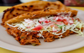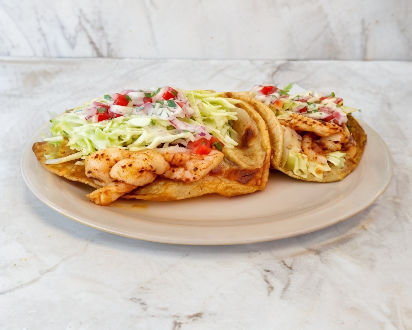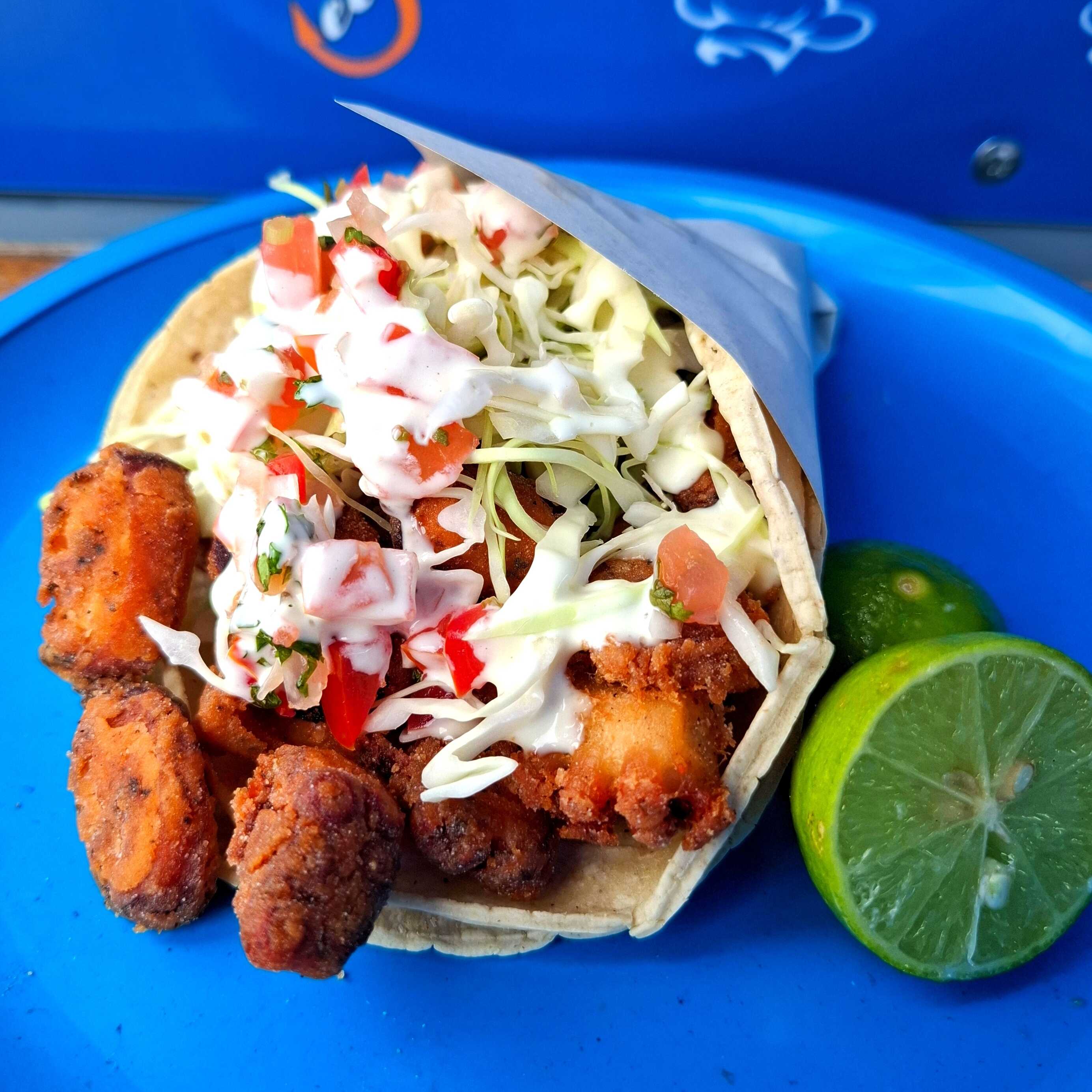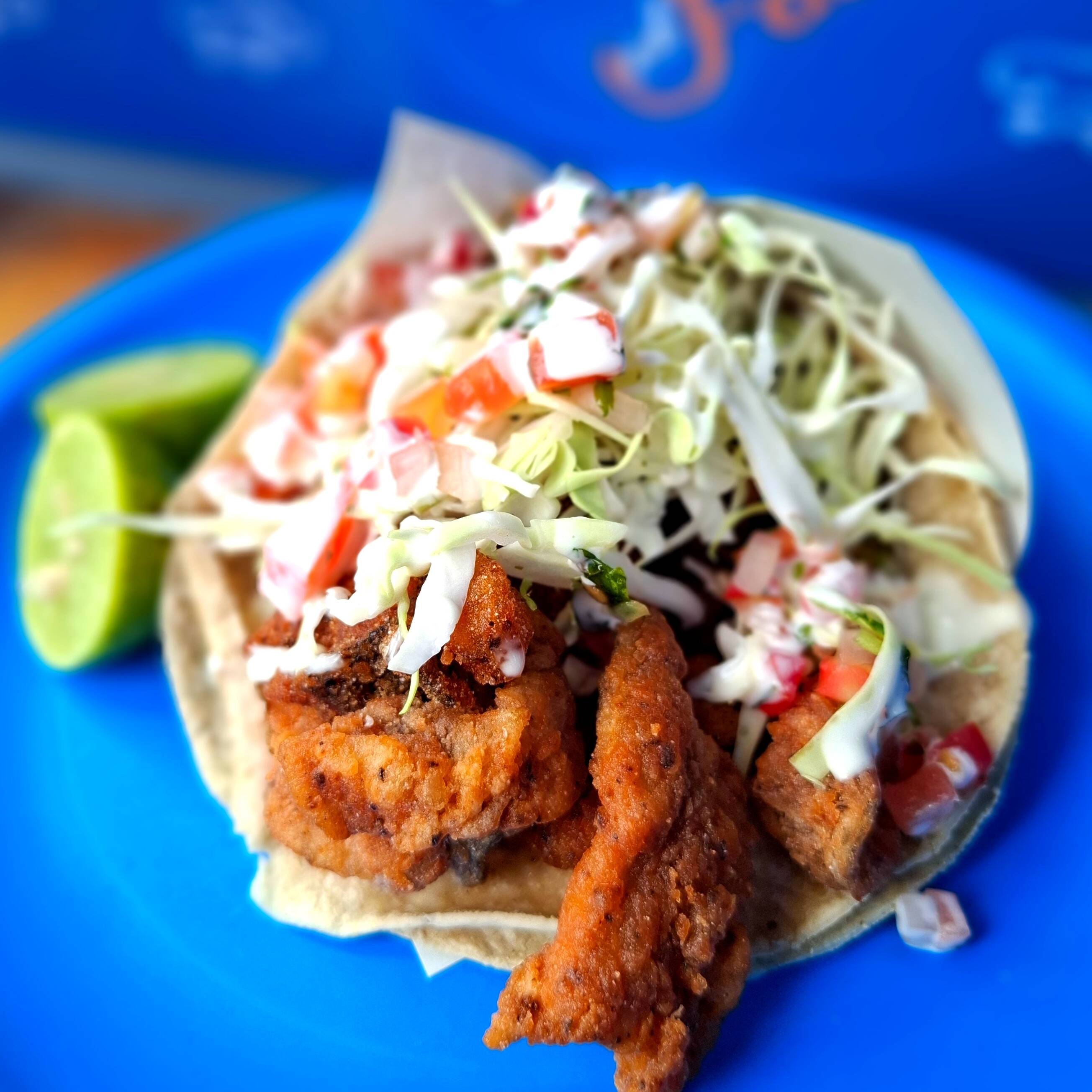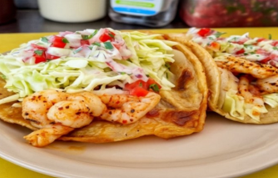 Taco de camarón capeado en tortilla de maíz.