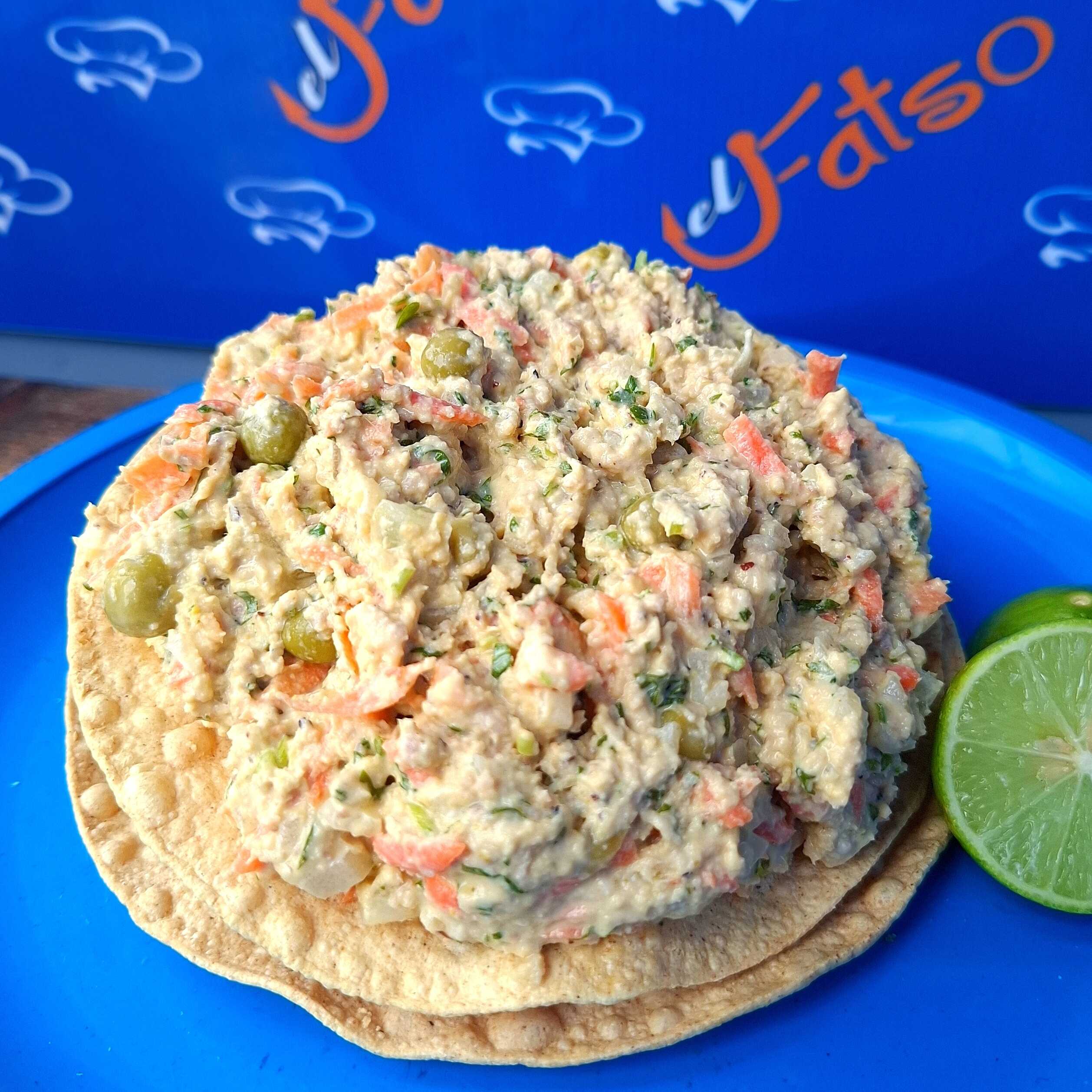 Pescado molido (sierra) curtido en limon, cebolla blanca, cilantro, zanahoria, chicharo, jalapeño en vinagre, mayonesa