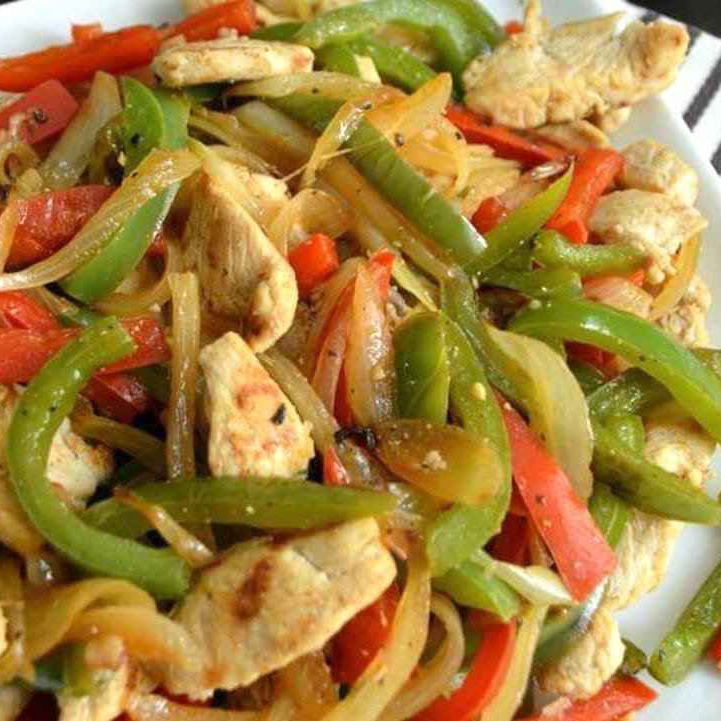 Fajitas de pollo (incluye agua, sopa y postre)