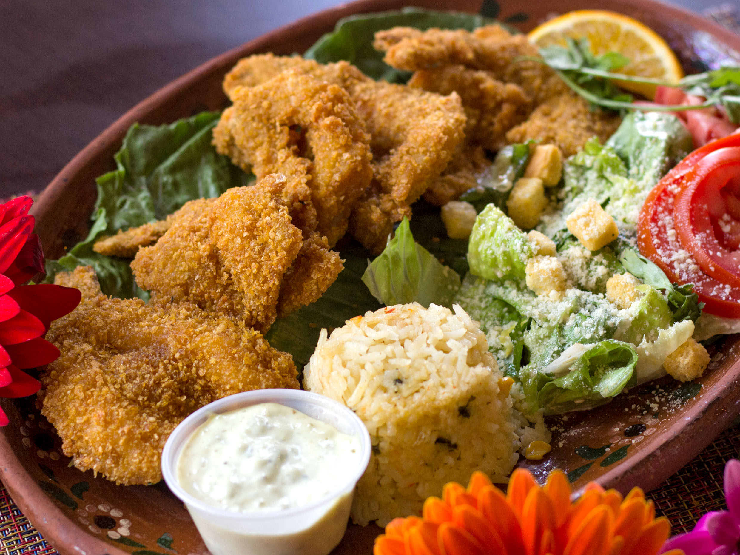 Ahogados en crema chipotle, gratinados, acompañados de arroz y ensalada