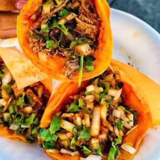 Servida en la tortilla de tu preferencia. Cebolla, cilantro y salsa aparte