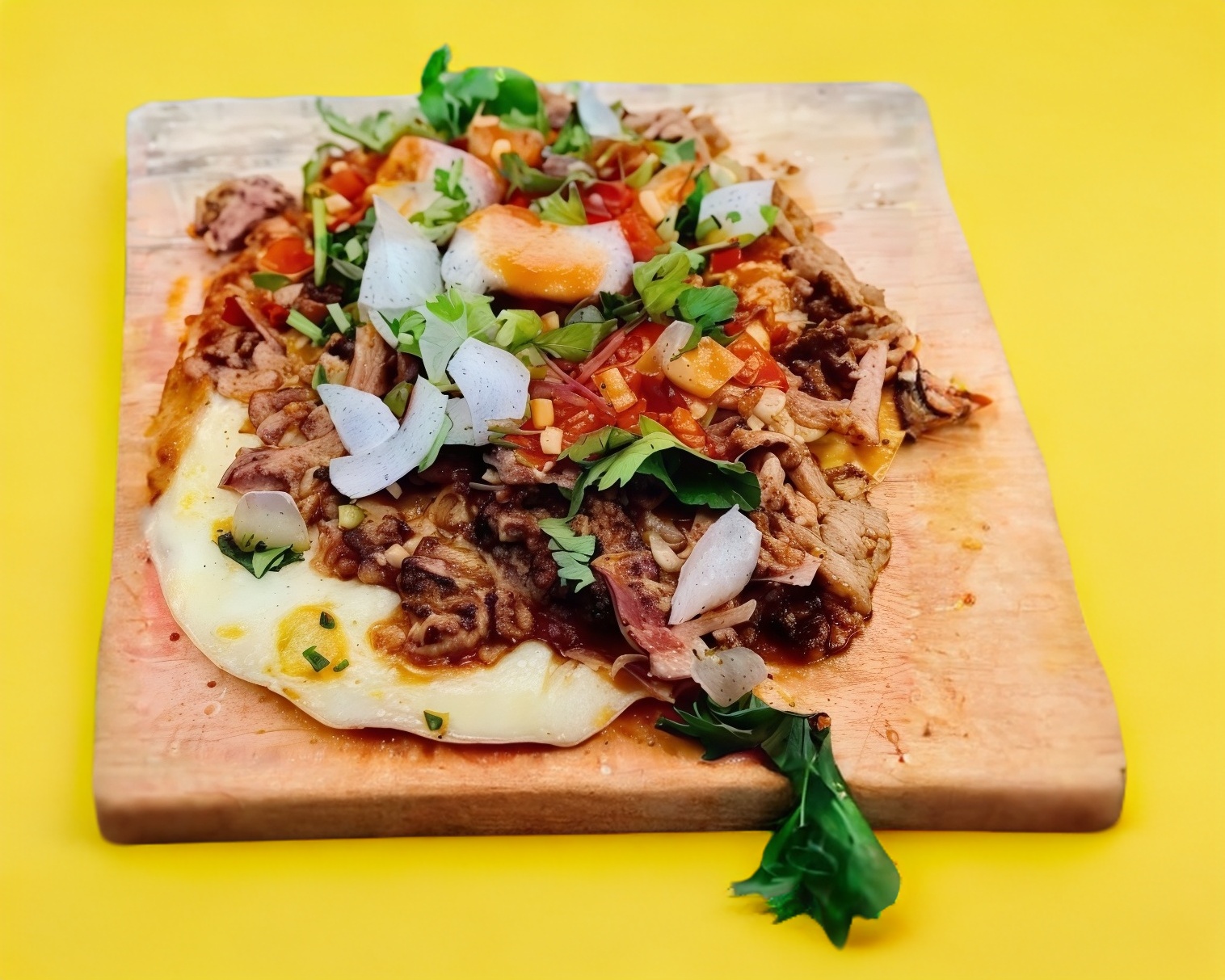 Mulita de Maíz. Cebolla, cilantro y salsa.
