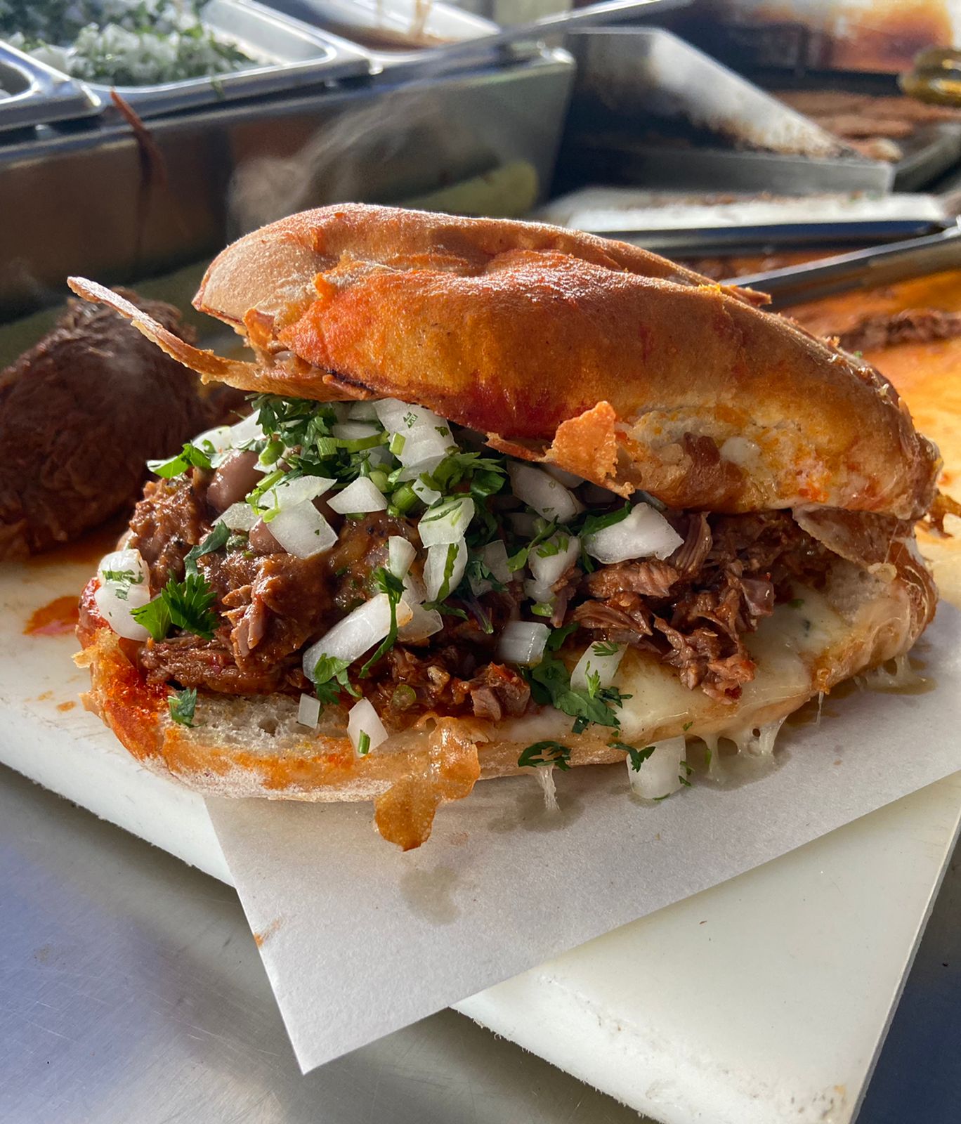 Torta de birria bien reportada.
