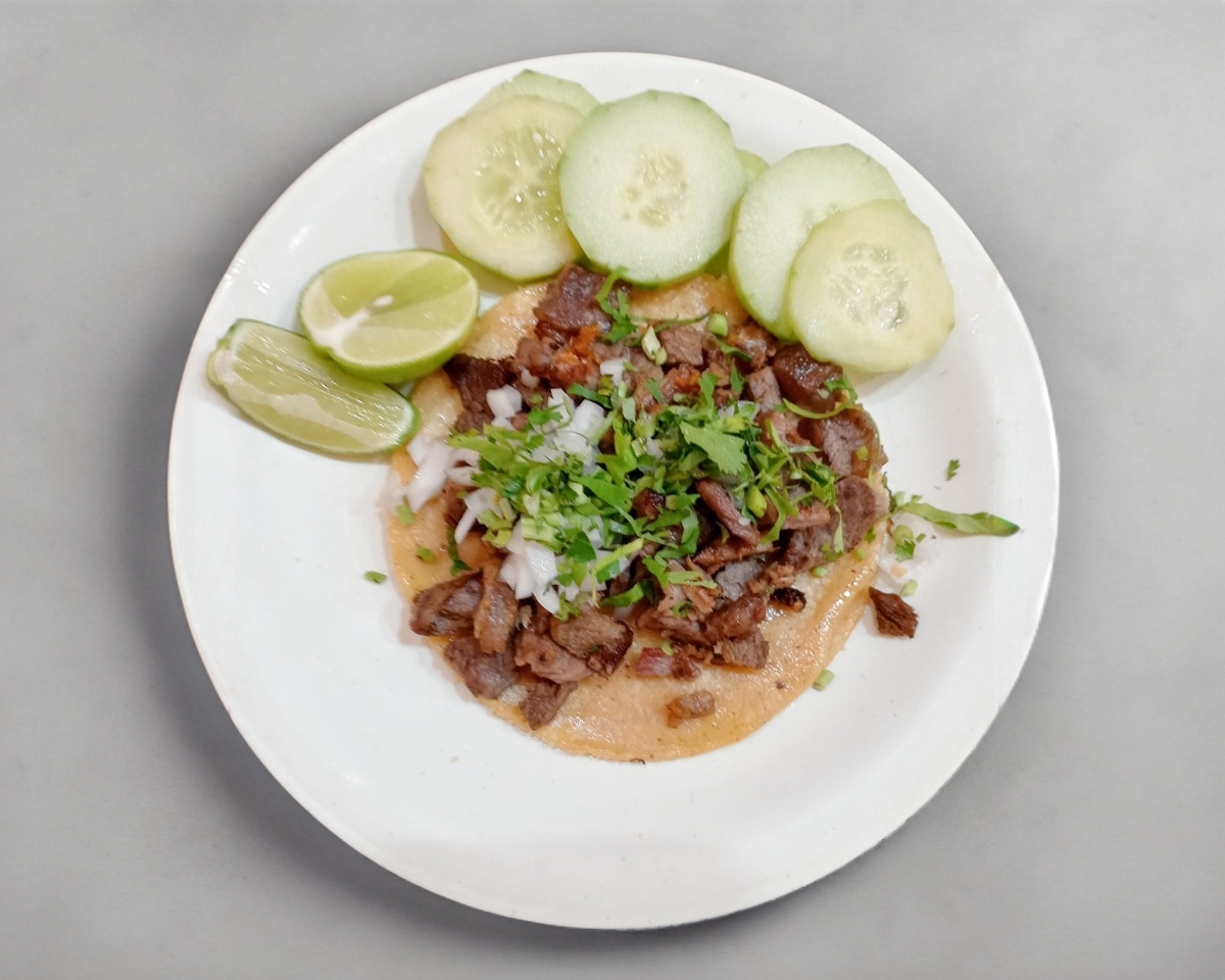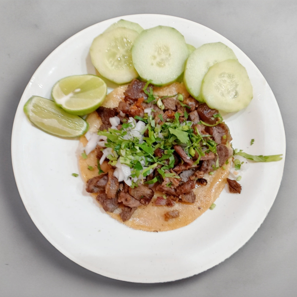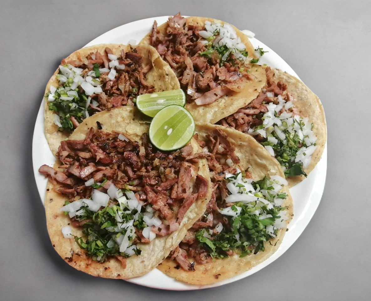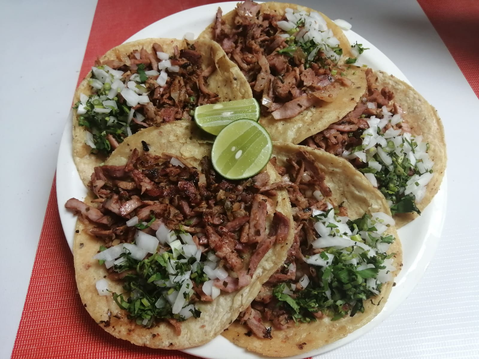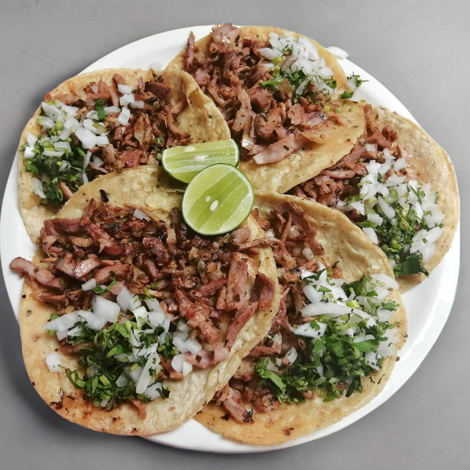 5 Tacos de carne estilo árabe. Caerne en adobo con Perejil y cebolla)