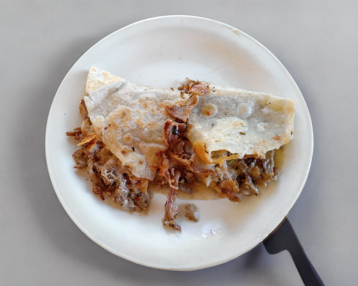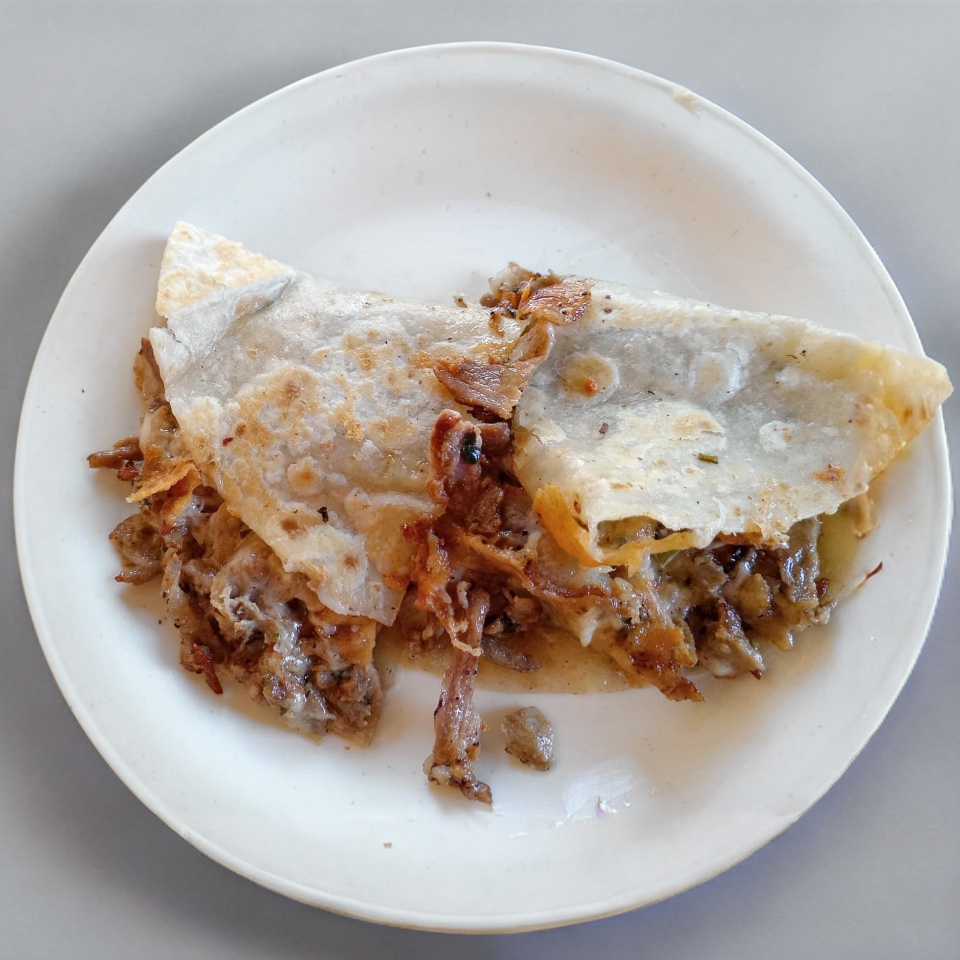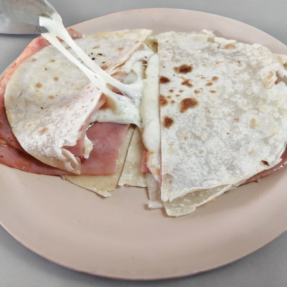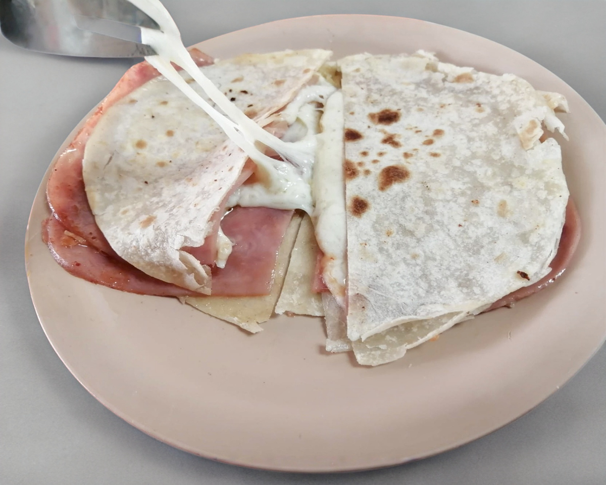 Cebolla, poblano, jamon, chuleta de puerco, tocino carne al pastor y queso gratinado, incluye tortilla