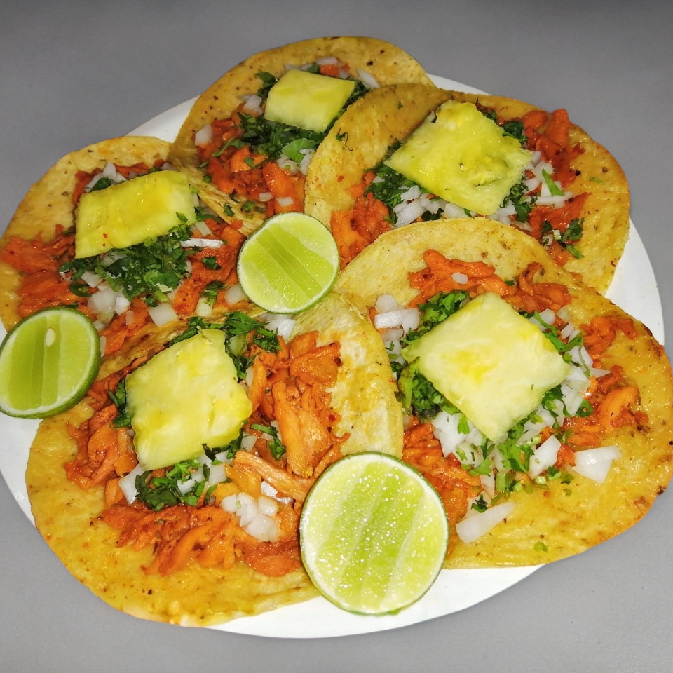carne al pastor, jamon, piña, tocino, chuleta y queso gratinado