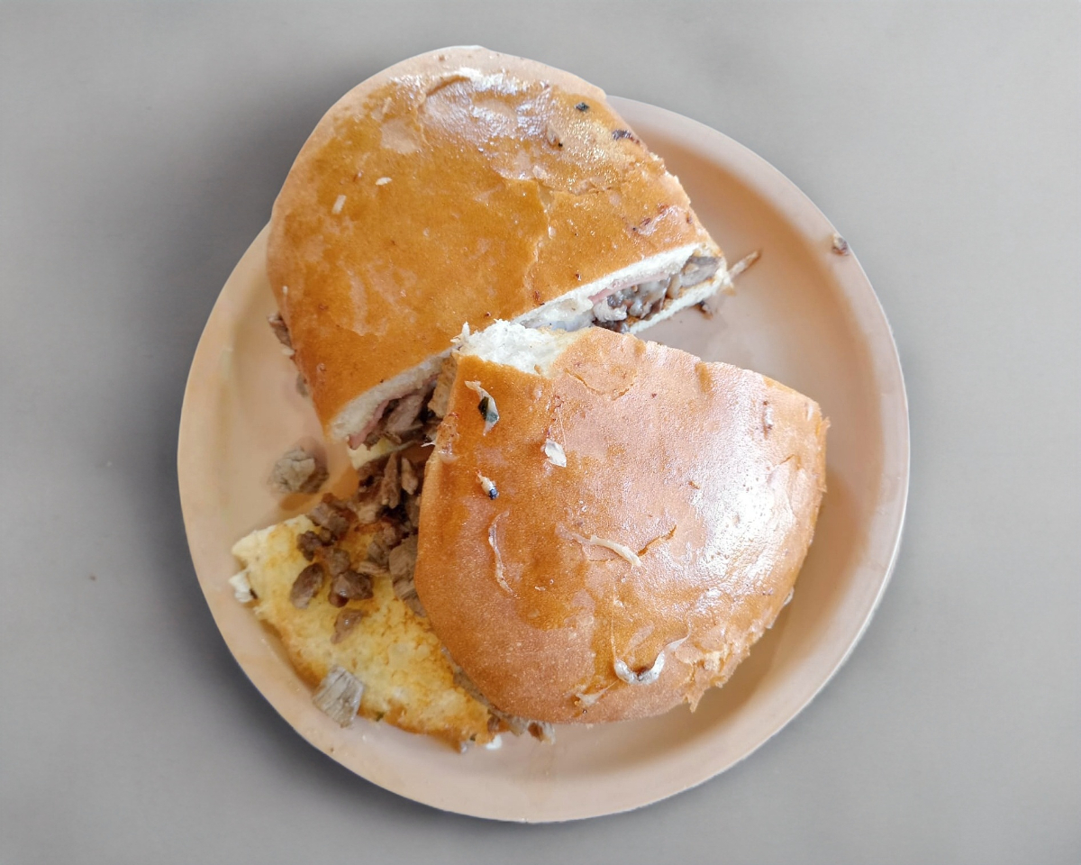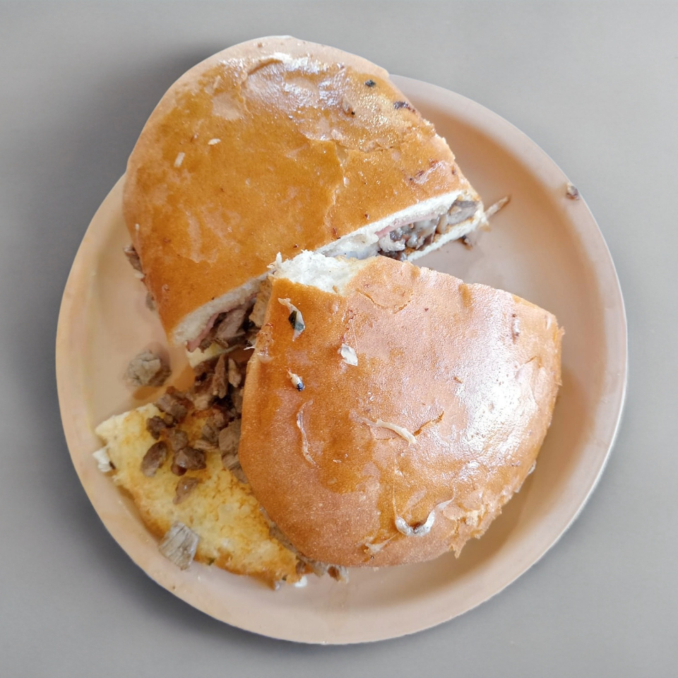 Torta con jamón, mayonesa y carne árabe.(diferente adobo cocinado con cebolla y Perejil)
