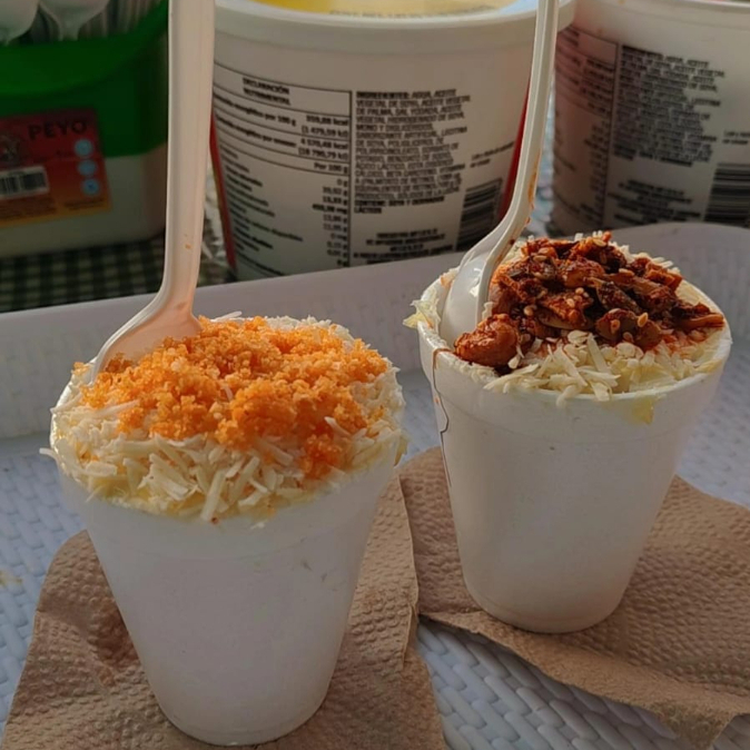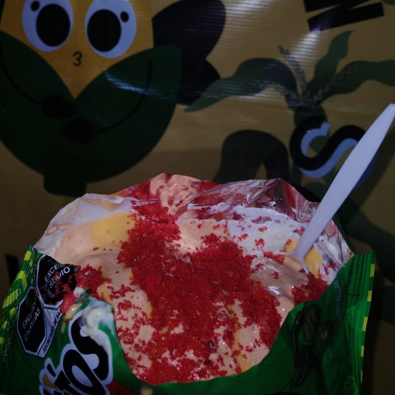 Mantequilla, mayonesa, queso, sal, limón, queso amarillo y flami hot. Sabritas a escoger.