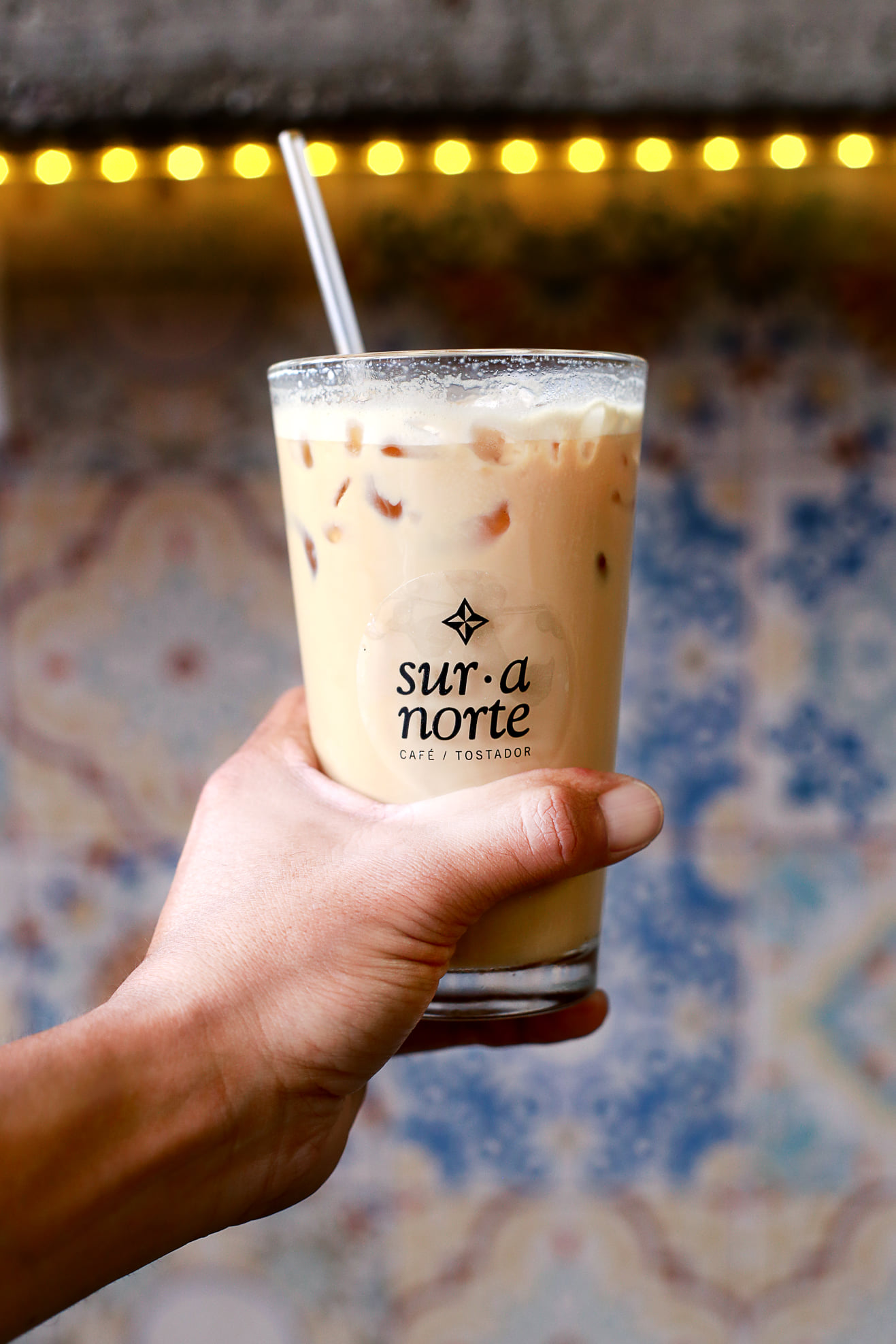 Latte a base de Espresso y jarabe de Caramelo, con leche y hielos