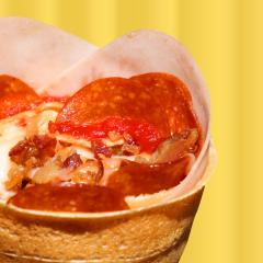 Jamón, Tocino, Peperoni, Queso monterrey y Salsa de tomate.